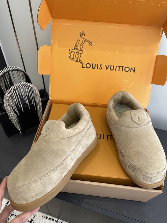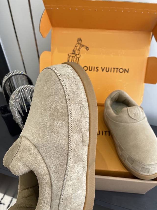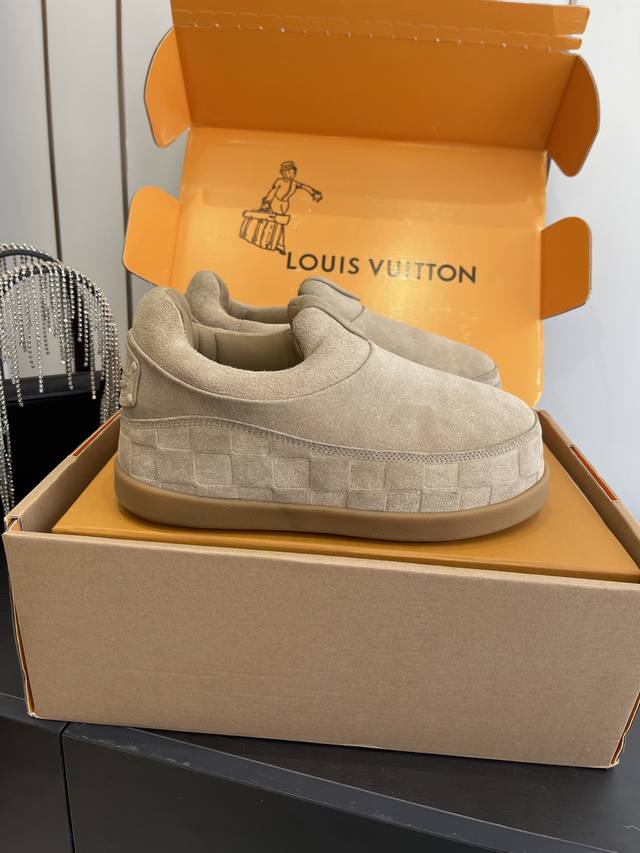 Top-tier version Louis Vuotton 2025 Autumn/Winter Chubby Couple Sneakers. The chubby, cute bear paw sole is also adorable. Made with suede cowhide leather, the shoes feature a partial embossed Nigo-interpreted Lv Damier pattern, subtly echoing the traditional Chinese aesthetic of removing shoes indoors. Incorporating Chinese street style elements, the paw print rubber outsole subtly displays the Lv logo and Monogram flowers. The exquisite Italian craftsmanship showcases the brand's heritage within a comfortable sneaker design. Sizes: 35-45 (Women's 40, Men's 45, custom-made).