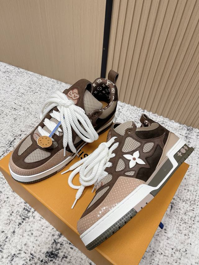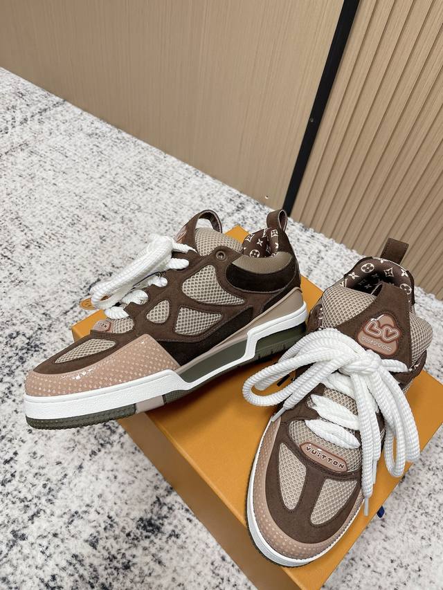 Top-tier version: DDD Lv Skate Sneaker, Clover Couple Sneakers, Loafers, Skate Shoes DDD Newly injected with youthful energy, trendy series DDD Added two shoelace design, tongue and heel both feature the brand's founding year 1854, Trainer same sole, full-grain cowhide upper, TPU film, high-elastic latex insole DDD Women's sizes 35 & 40, Men's sizes 39 & 45 DDD
