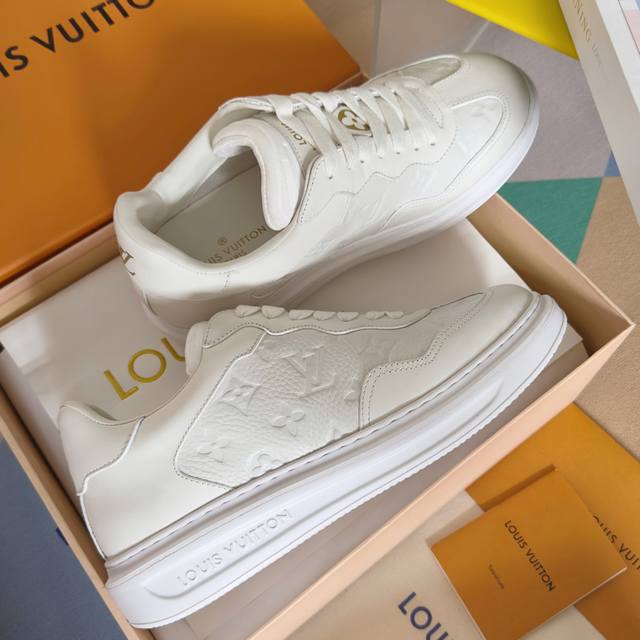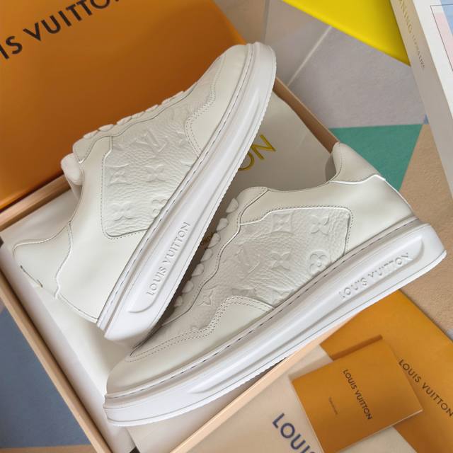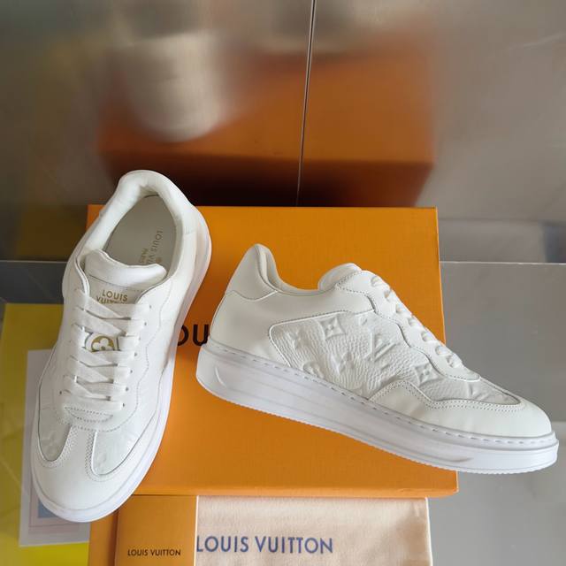 Top-tier version: Men's Louis Vuitton Beverly Hills series platform casual sneakers. These Beverly Hills sneakers are made of Epi suede, replicating the brand's iconic Epi leather grain texture. A simple, solid-color upper connects to a thick yet lightweight rubber outsole, with the handwritten Louis Vuitton logo adorning one side. The Louis Vuitton Paris logo and LV lettering decorate the heel and tongue. Comes with exquisite boutique packaging. Material: Original imported top-grain cowhide. Lining: Original custom breathable mesh. Sole: Original molded foamed rubber material. Sole thickness: 4cm. Size: Men's 39-45.