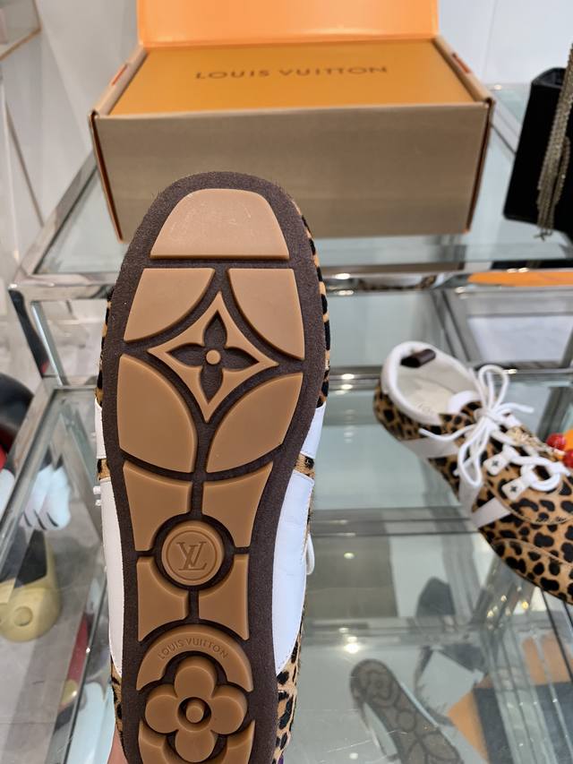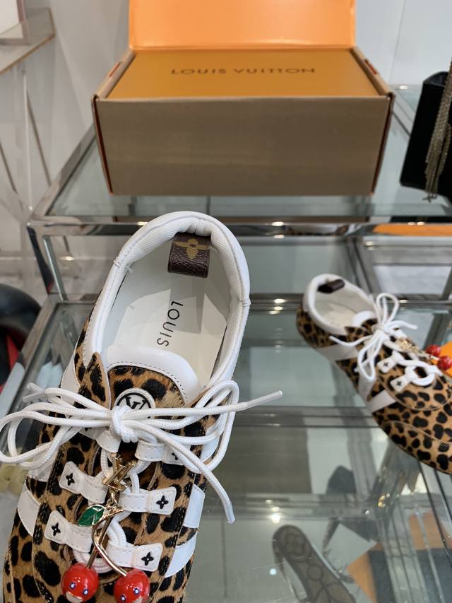 Sneakerina Ballet Style Sneakers with smooth suede cowhide leather creating flowing lines, combining the lightness of ballet shoes with the comfort of athletic shoes. Side Lv logo Monogram canvas, rich details on the heel strap, Sacchetto craftsmanship and TPU outsole upgrade for a soft wearing experience. Three accessories for easy matching