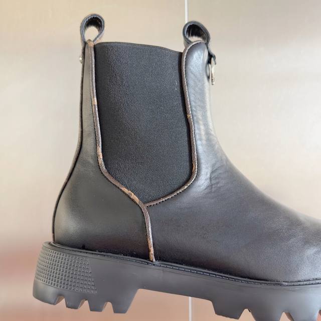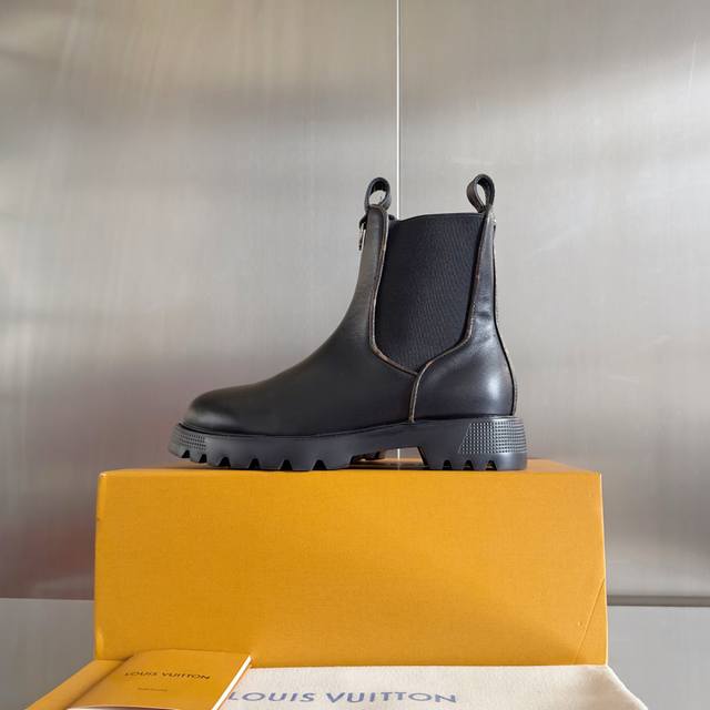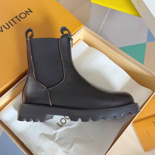 Top-tier version: Women's Louis Vuitton District Ranger ankle boots, Martin boots, Chelsea boots. This District Ranger ankle boot embodies military inspiration and Louis Vuitton's travel heritage, featuring a soft cowhide leather upper adorned with metal chains and a Monogram canvas luggage tag-shaped charm. The Eva outsole has a finely textured surface, thick yet lightweight. Comes with exquisite boutique packaging. Material: Original custom top-grain cowhide. Lining: Original custom soft sheepskin lining. Outsole: Original molded foamed rubber material. Sole thickness: 3.5cm. Size: Women's 35-41.