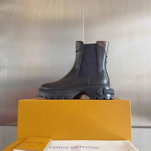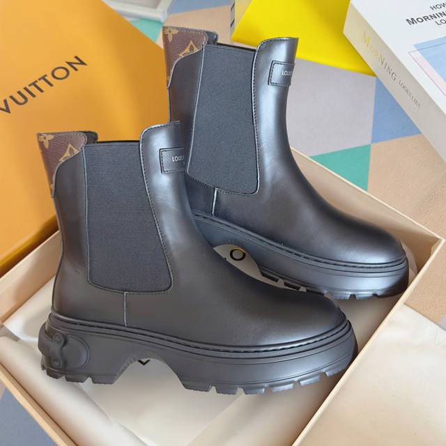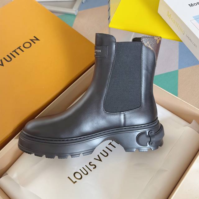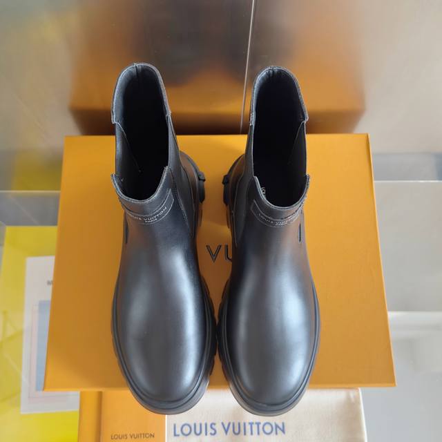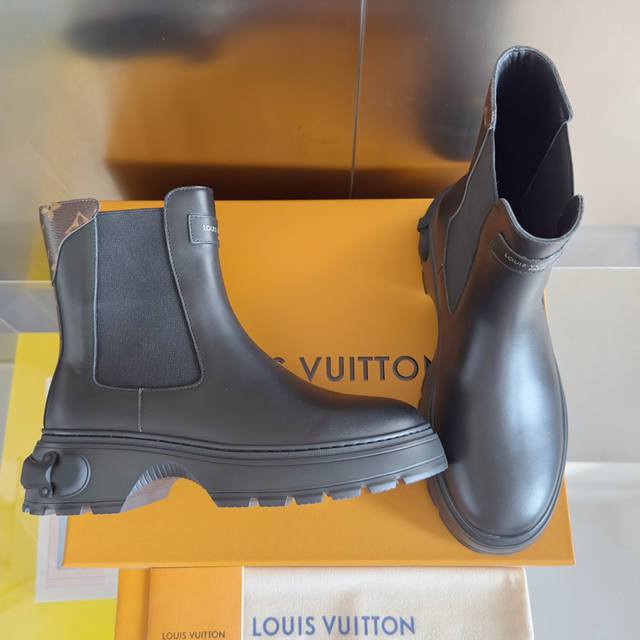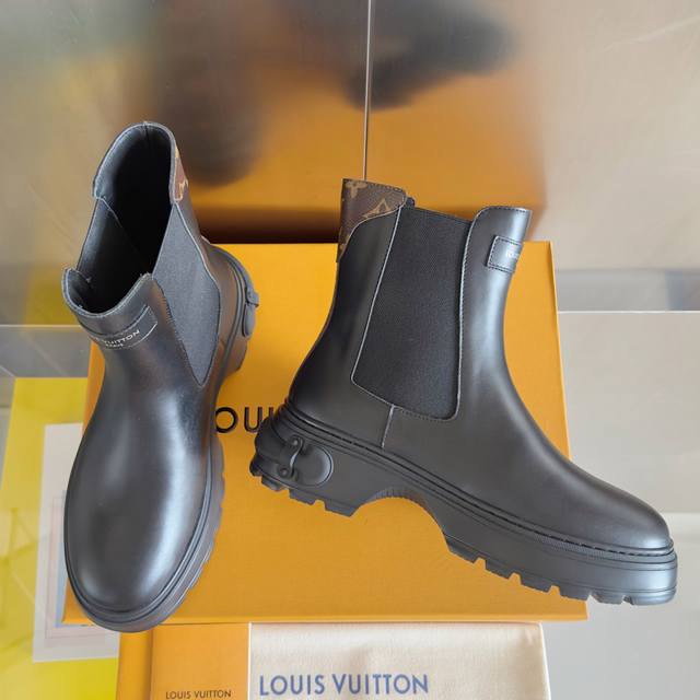 Top-tier version: Women's Louis Vuitton Squad platform Chelsea boots/ankle boots. These Louis Vuitton Squad Chelsea boots/ankle boots are crafted from smooth cowhide leather, exuding a stylish and confident stride. They feature Louis Vuitton embossed leather tags and Monogram canvas trim at the front and back, respectively, while the thick rubber outsole cleverly incorporates elements of a trunk handle. Comes with exquisite boutique packaging. Material: Original custom-made imported top-grain cowhide leather. Lining: Imported soft sheepskin lining. Sole: Original molded rubber foam material. Sole thickness: 5cm. Size: Women's 35-40.