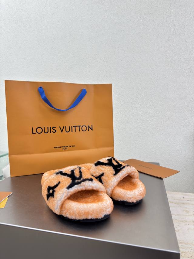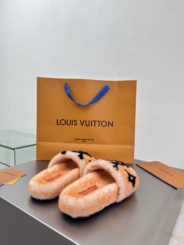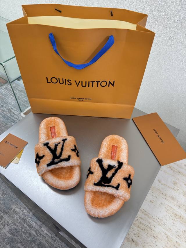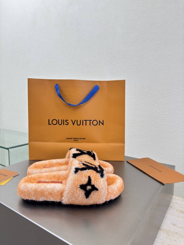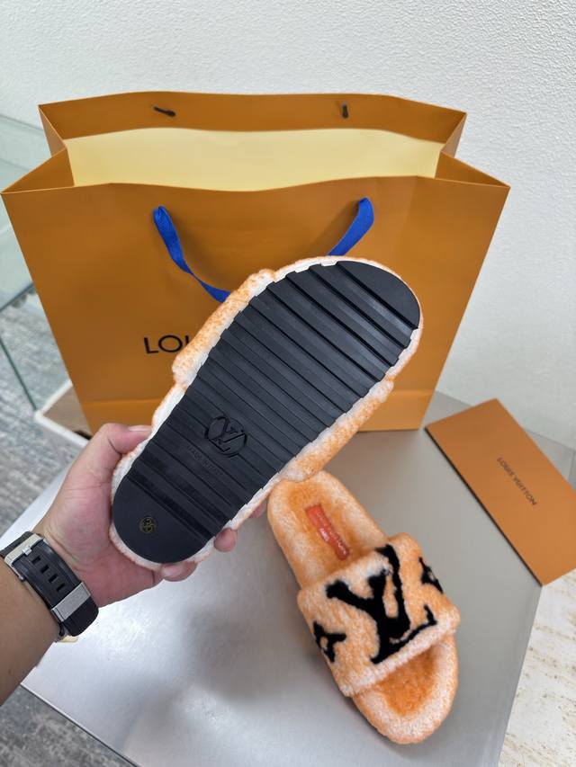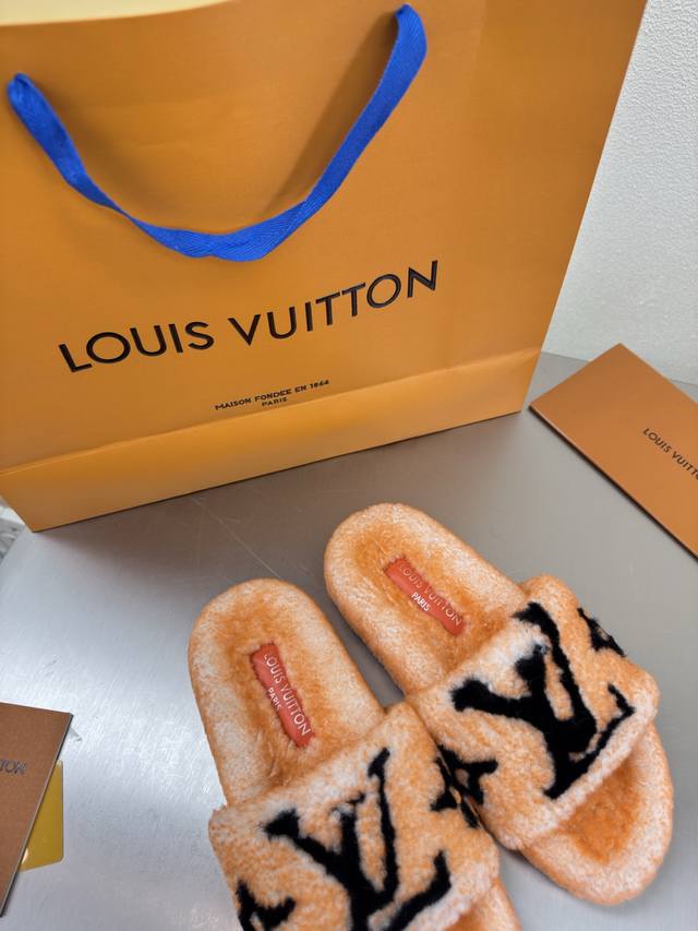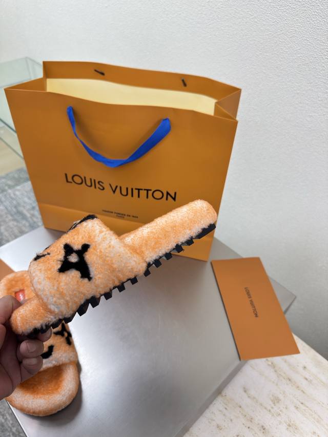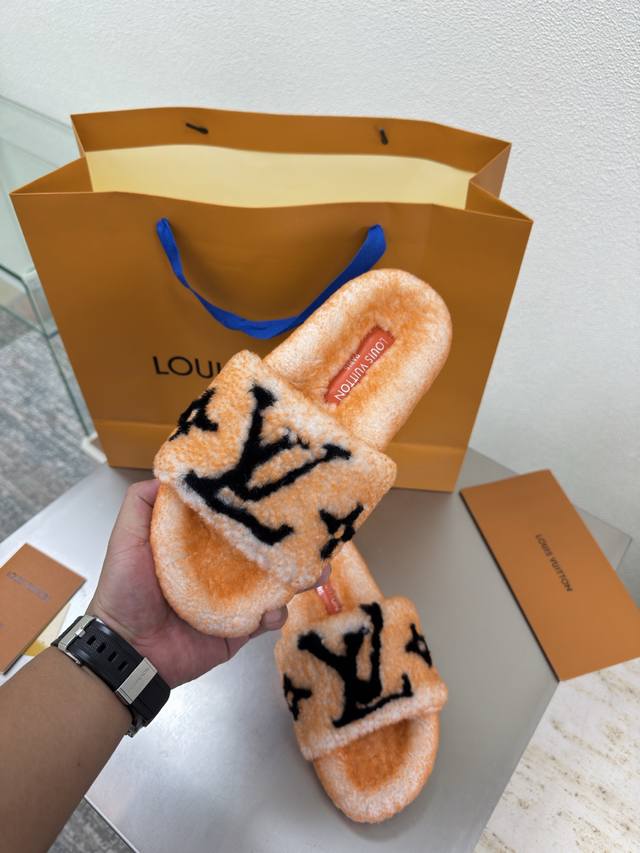 Orange lamb wool diamond hand-stitched logo Lv creates