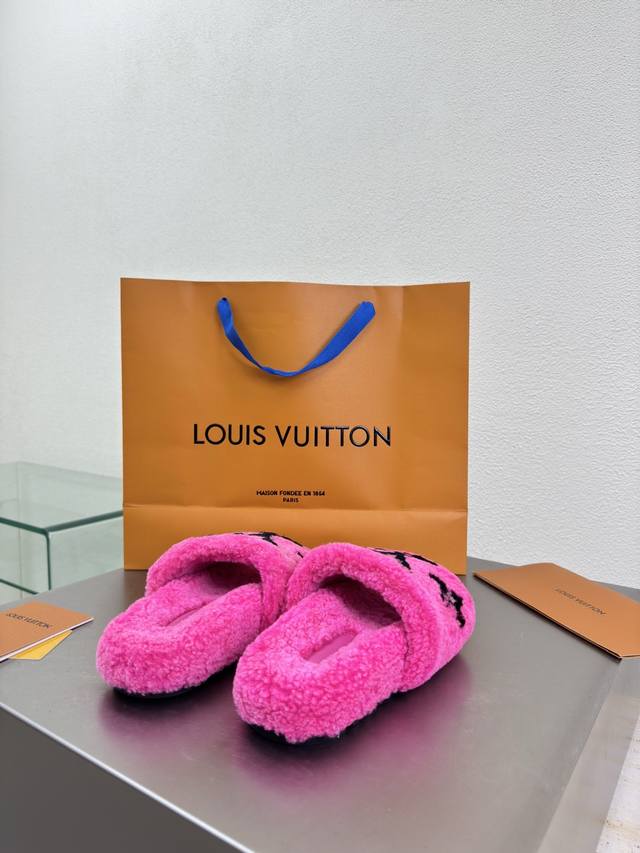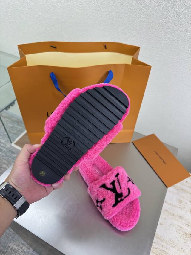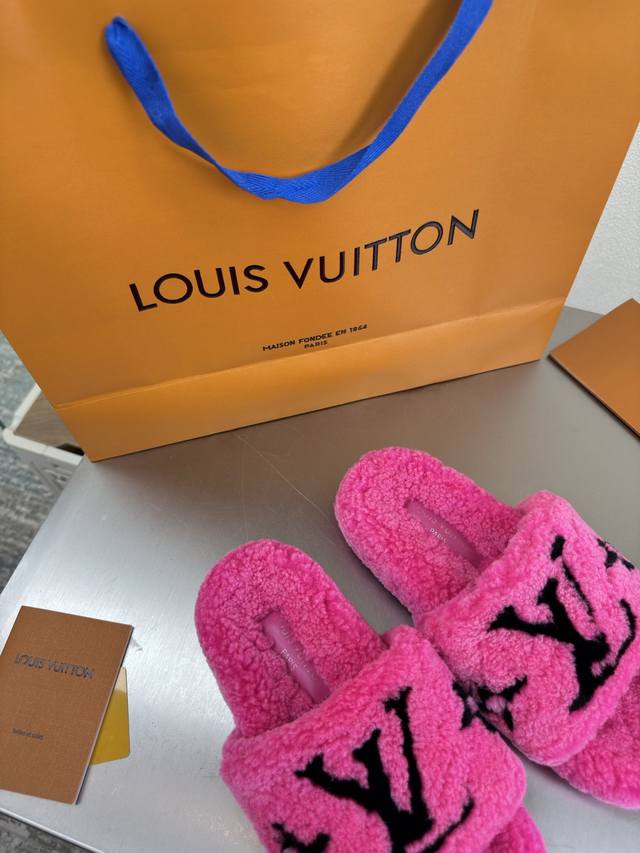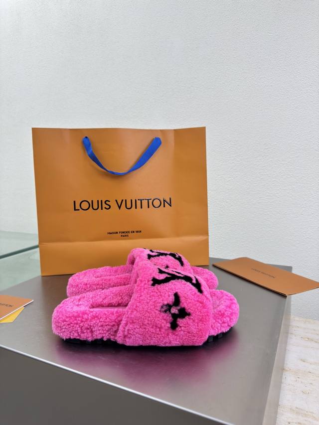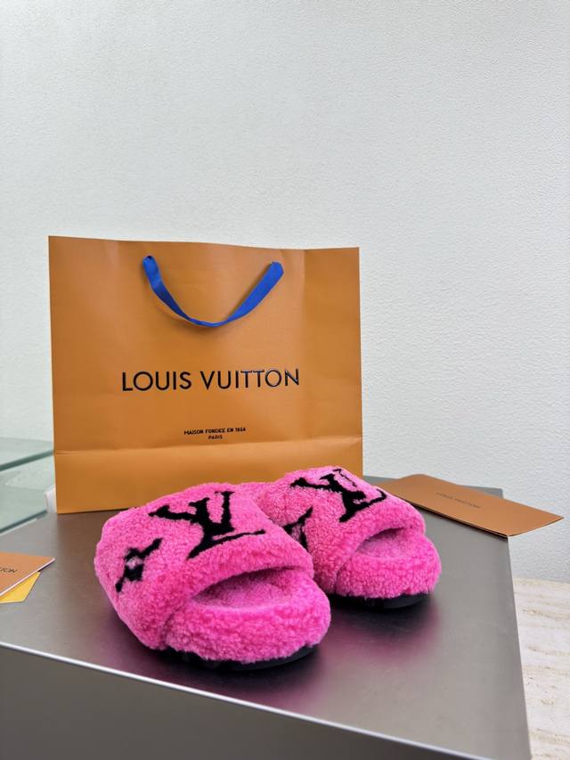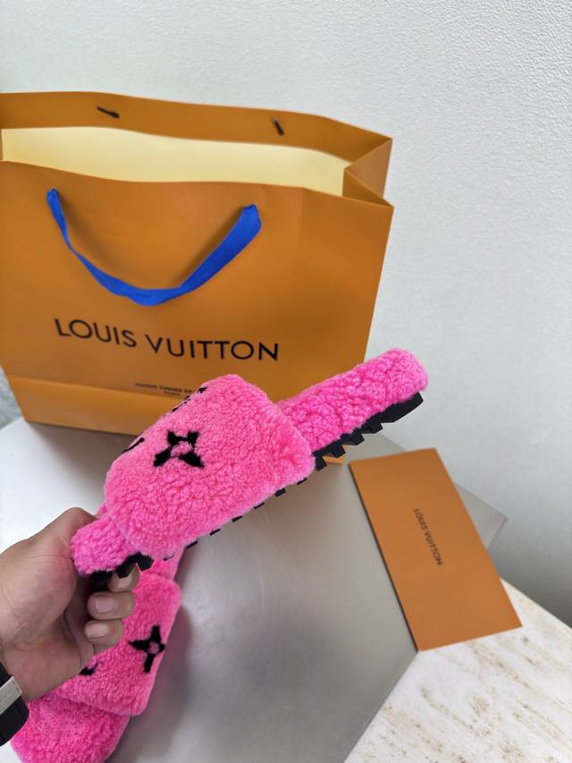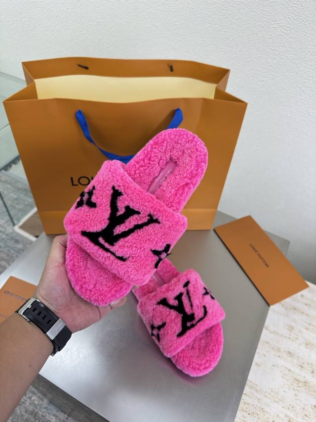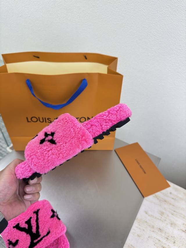 Rose red lamb wool diamond hand-stitched logo Lv creates