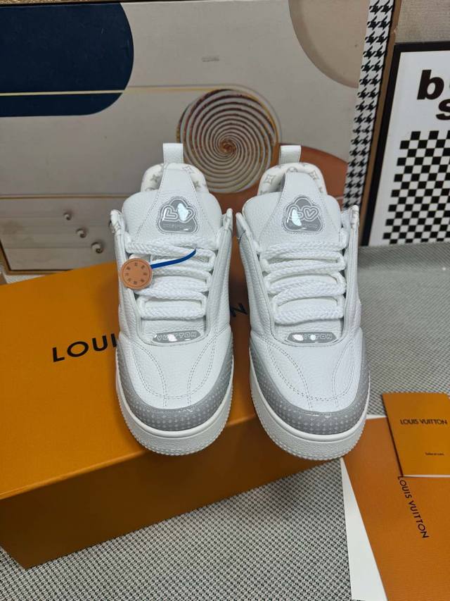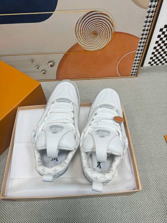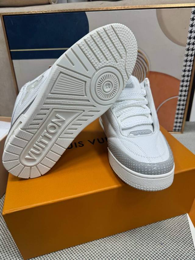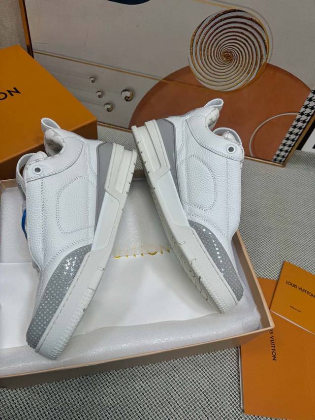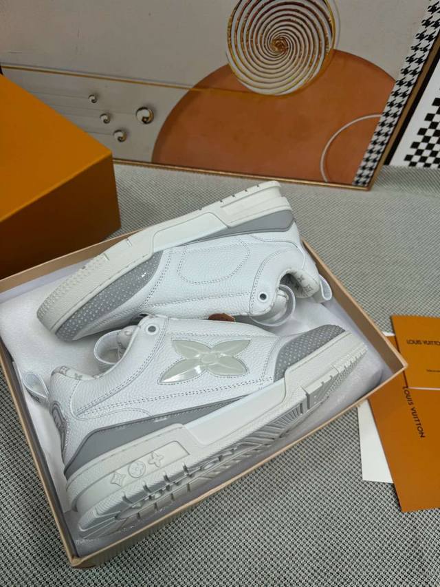 Upgraded version of the flats. LV-Louis Vuitton vs. all other versions on the market. Couple's pair. New runway basketball sneakers. Purchase quality. 1:1 replica of the original! Extremely comfortable and meticulously crafted. The upper is crafted from imported Italian calfskin leather, with the brand's logo and signature on the side. The imported breathable mesh lining provides exceptional comfort. The original, two-tone TPU molded outsole is supplied by the manufacturer. Goodyear stitching and overlocking are used throughout. Sizes: Women's 35-40, Men's 39-45. Standard sizes: 38, 46, 47, and 30. Custom-made, no returns.