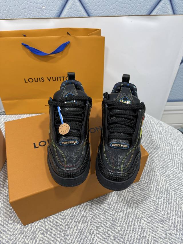 Upgraded version of the flats. LV-Louis Vuitton vs. all other versions on the market. Couple's pair. New runway basketball sneakers. High-quality shopping service. 1:1 replica of the original! Extremely comfortable and meticulously crafted. The upper is crafted from imported Italian calfskin leather, with the brand's logo and signature on the side. The imported breathable mesh lining provides exceptional comfort. The original, two-tone TPU molded outsole is supplied by the manufacturer. Goodyear stitching and overlocking are used throughout. Sizes: Women's 35-40, Men's 39-45. Standard sizes: 38, 46, 47, and 30. Custom-made, no returns.