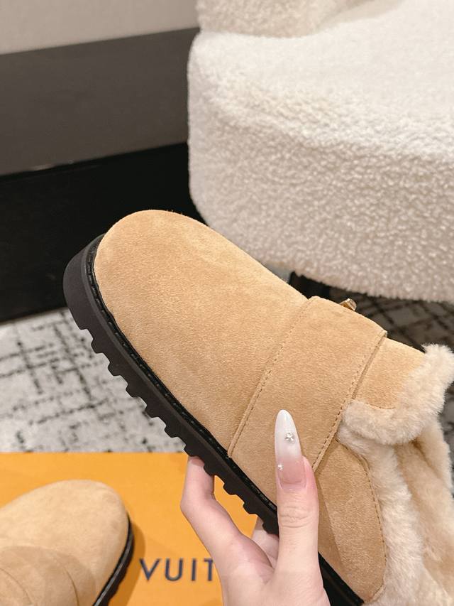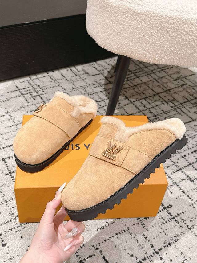 Women's & Men's Louis Vuitton Easy Series Birkenstock Platform Fur Sandals. Original purchase and development. This Louis Vuitton Easy sandal is made of suede cowhide leather, featuring a Monogram pattern for a trendy look. The LV lettering highlights the adjustable strap, while the resilient insole and micro-outsole provide a lightweight and comfortable experience. Comes with exquisite boutique packaging. Material: Original custom imported top-grain cowhide. Lining: Original custom warm wool lining. Outsole: Original molded rubber foam material. Sole thickness: 4cm. Size: Women's 35-41, Men's 40-46, Women's 40.41, Men's 45.46 (custom made).