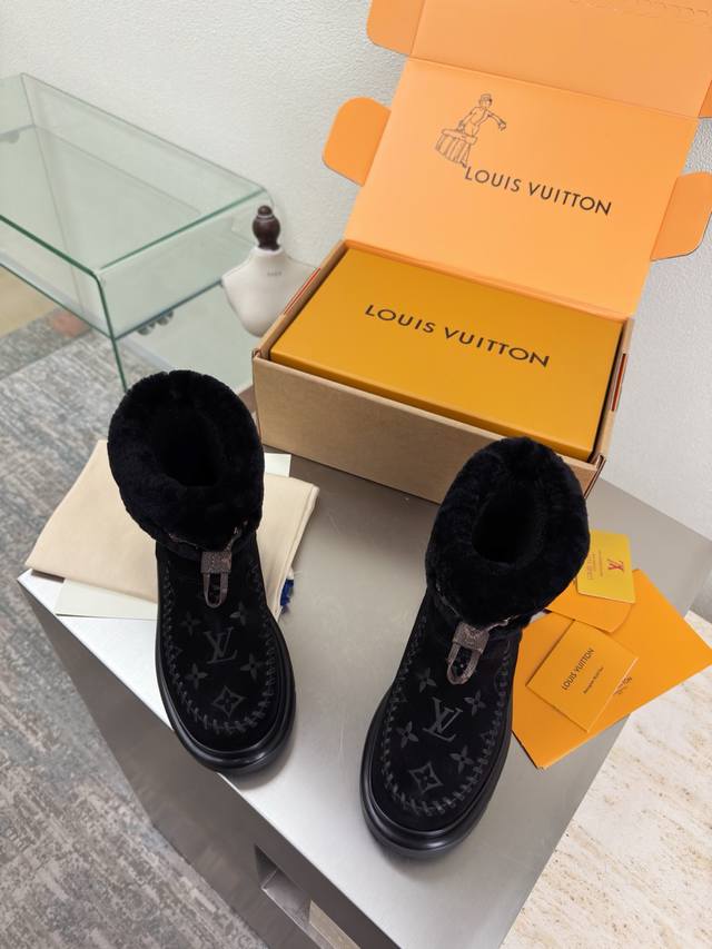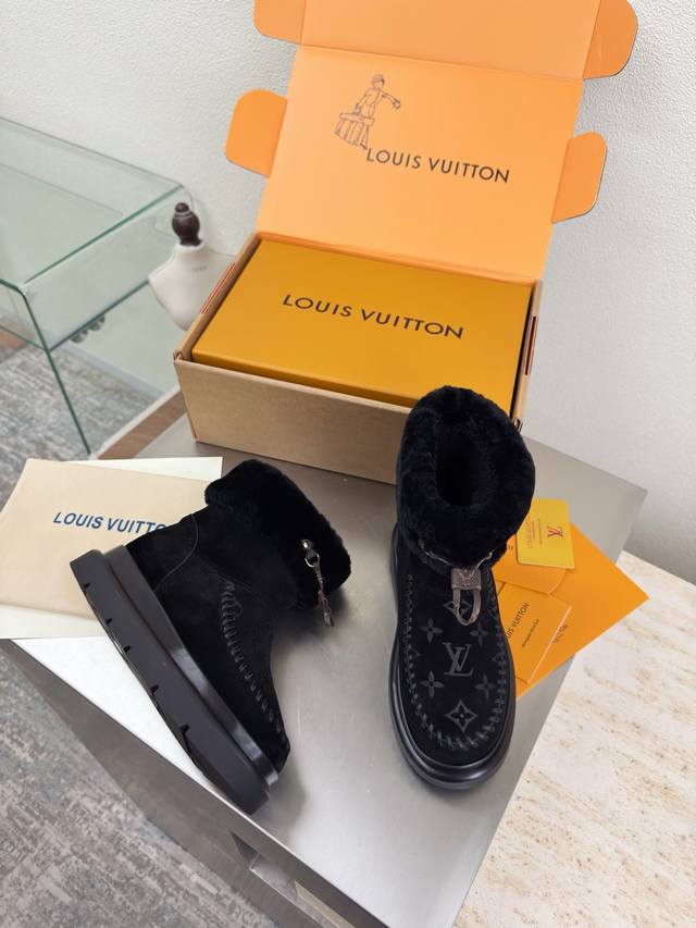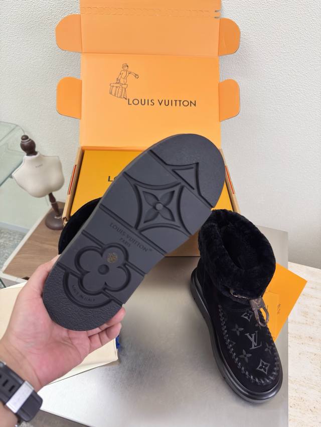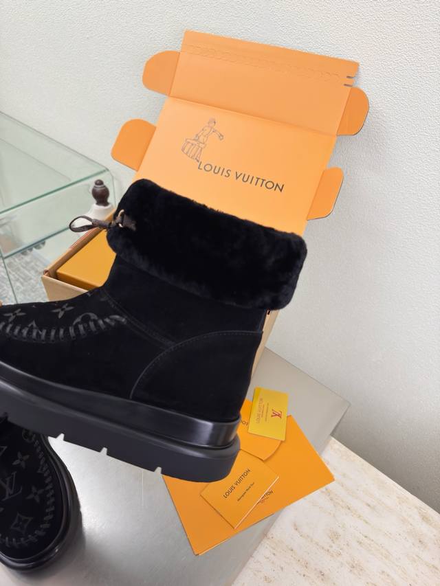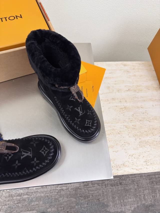 Wool-lined Snow Boots with Printed Logo, Hand-stitched DDD High-gloss cow suede DDD Imported lamb wool slippers DDD Lv Super high cost-performance packaging DDD High-quality, flawless, 3 colorways DDD Black logo Lv creates DDD so that Lv DDD can still provide creators and young players with amazement and desire. DDD 3 new colorways are being released again with high production volume. The actual products have been fully exposed and are expected to be released one after another soon! DDD Material: Imported lamb wool, high-quality, flawless DDD Sole: Original TPU outsole DDD Sizes: DDD 35 36 37 38 39 40 41 DDD