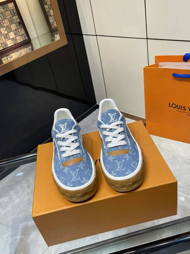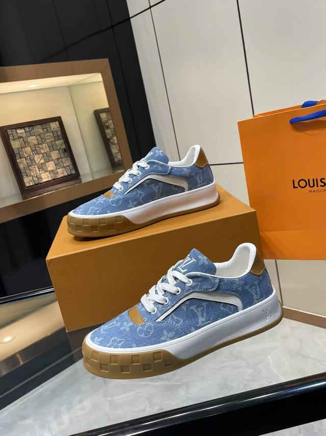2025 Louis Vuitton latest style, platform casual sneakers. 1:1 original replica. Exquisite boutique packaging. Material: Original custom imported top-grain cow suede. Lining: Top-grain sheepskin. Outsole: Original molded TPU two-tone outsole. Men's sizes 39-45.