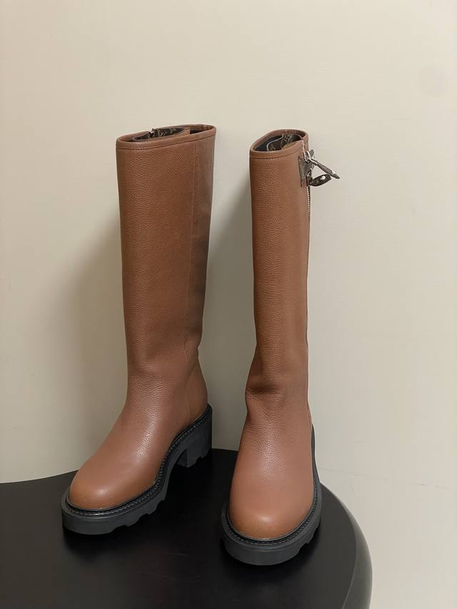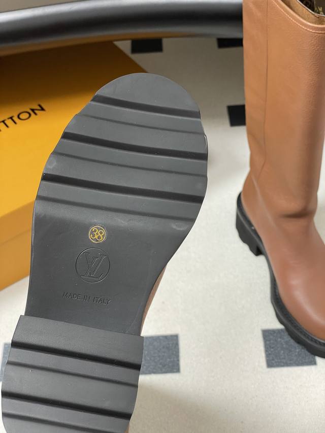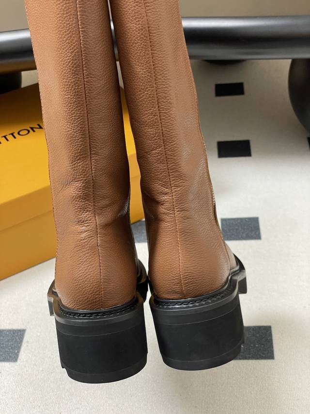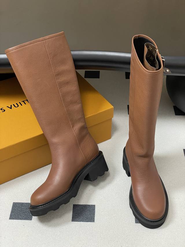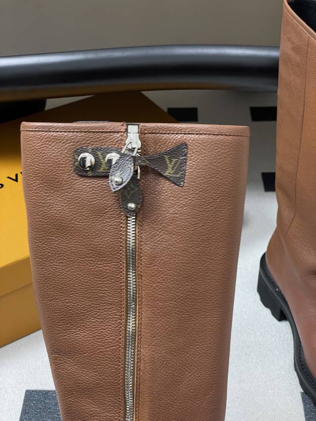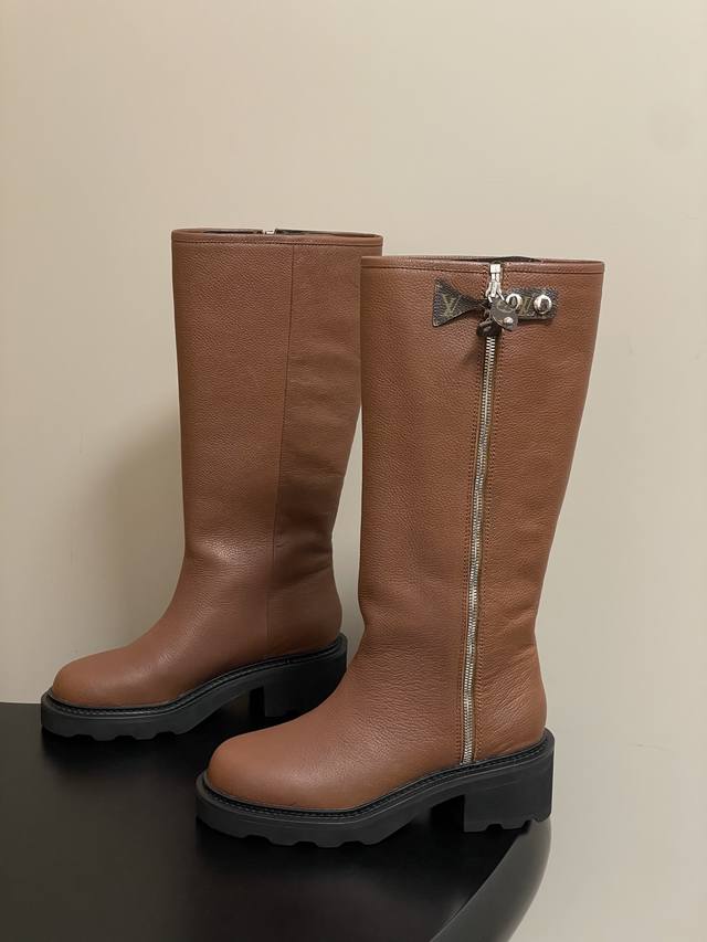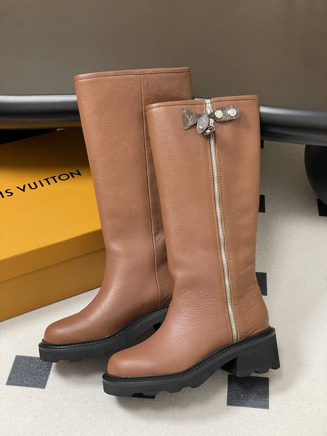 25Fw Autumn/Winter New Louis Vuitton LV Beaubourg High Boots Monogram Canvas Pendant Riding Boots Platform Side Zipper Over-the-Leg Boots