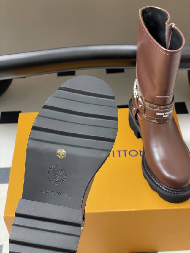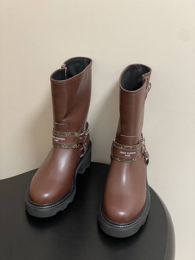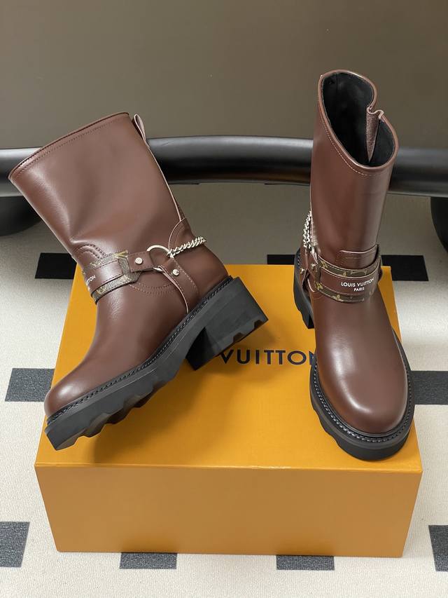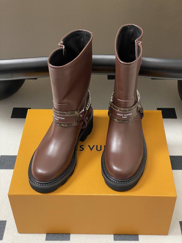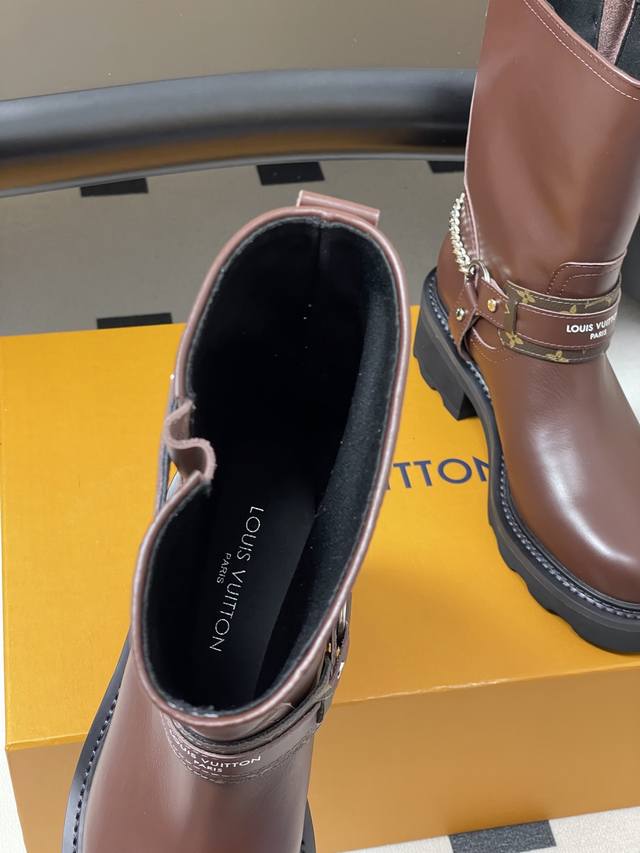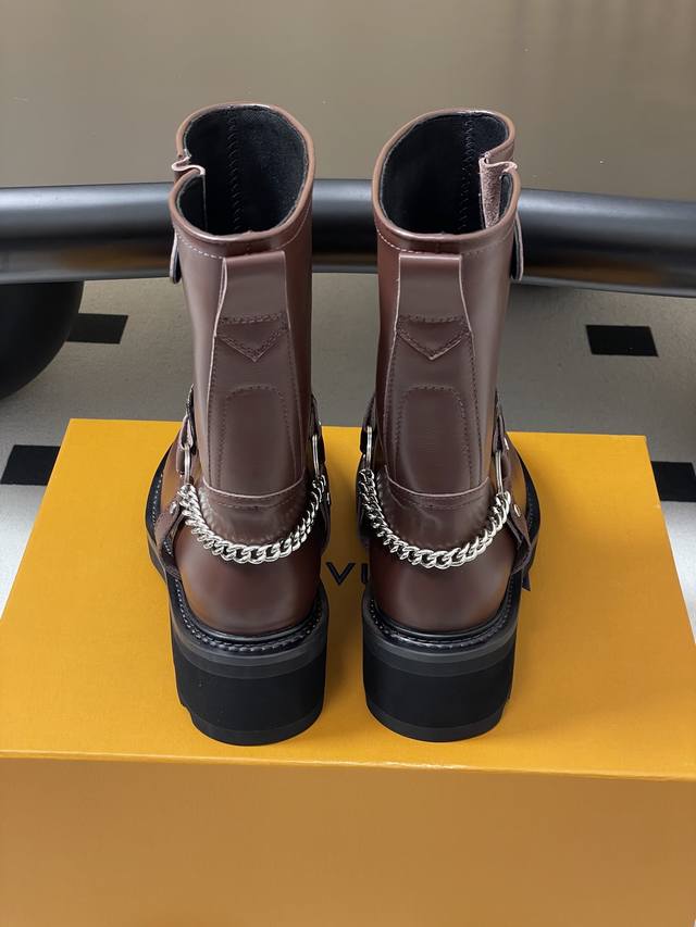 25Fw Autumn/Winter New Louis Vuitton Lv Chain Ankle Boots Slip-on Monogram Leather Two-tone Platform High-Heeled Chelsea Boots