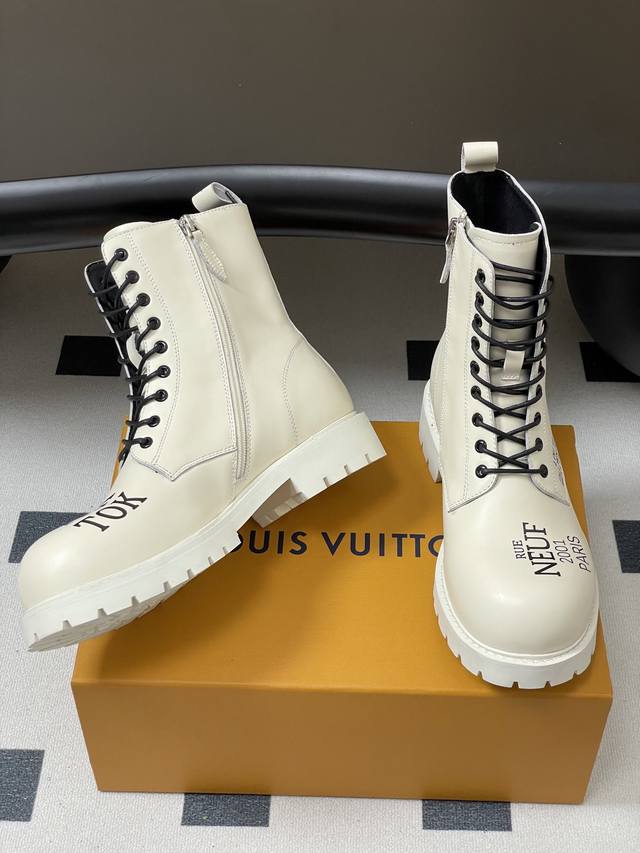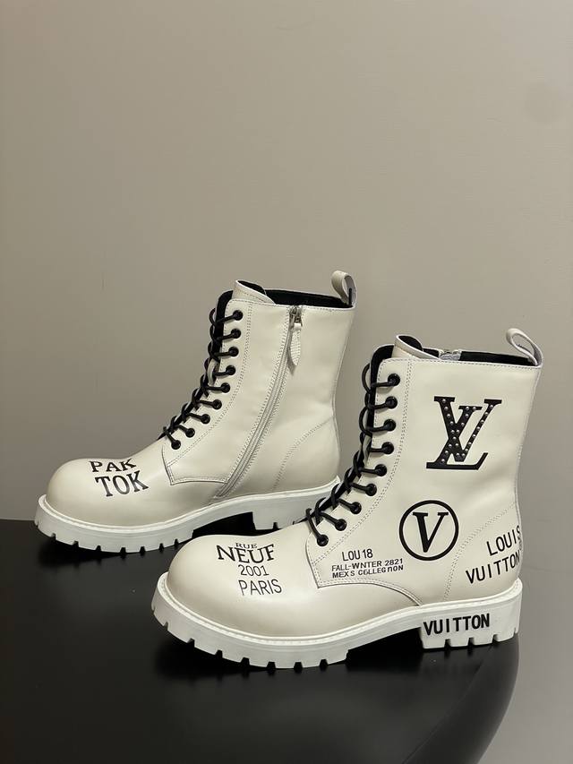 25Fw Autumn/Winter New Louis Vuitton Lv Graffiti Martin Boots Series Couple's Side Zipper Ankle Boots Lace-up Thick-soled Martin Boots