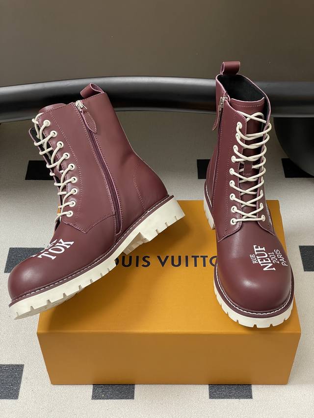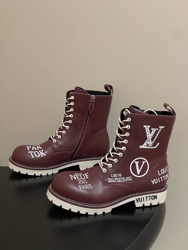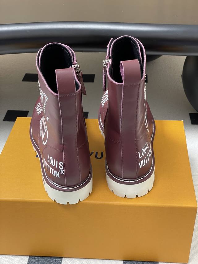 25Fw Autumn/Winter New Louis Vuitton Lv Graffiti Martin Boots Series Couple's Side Zipper Ankle Boots Lace-up Thick-soled Martin Boots