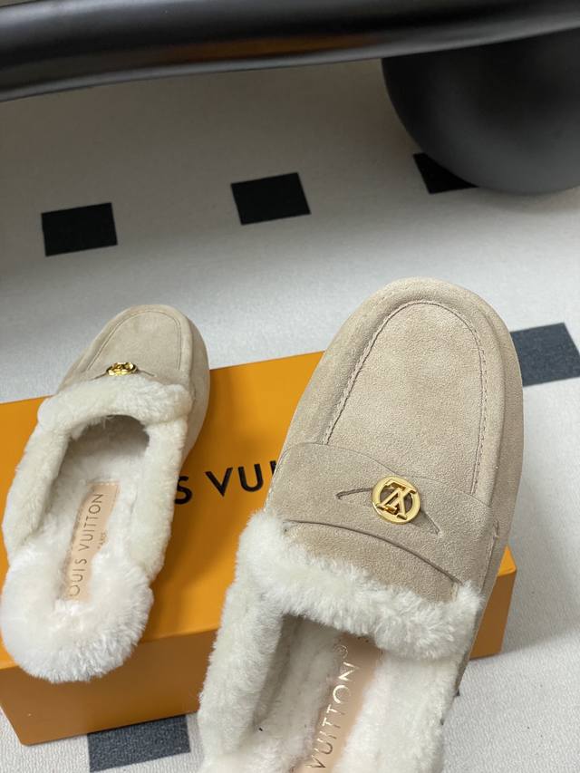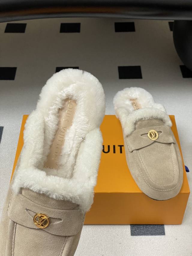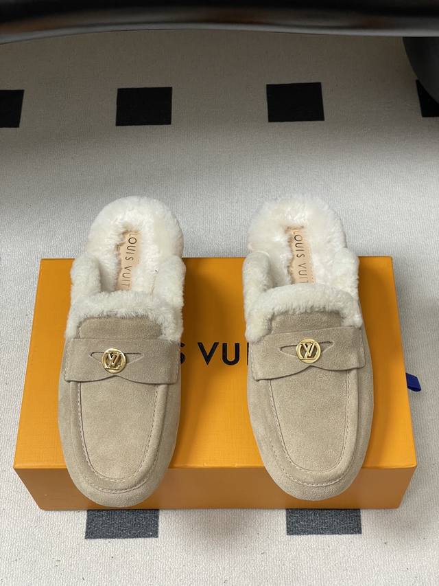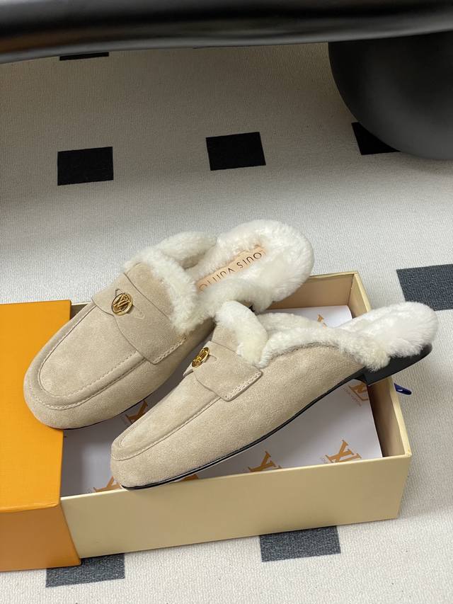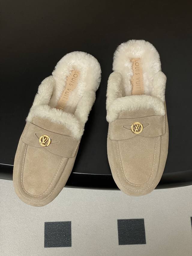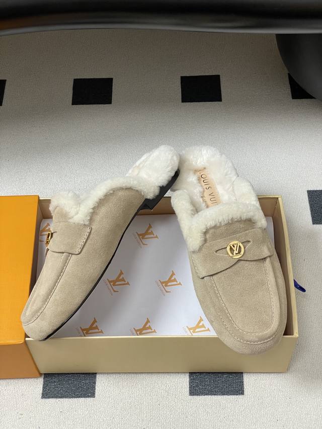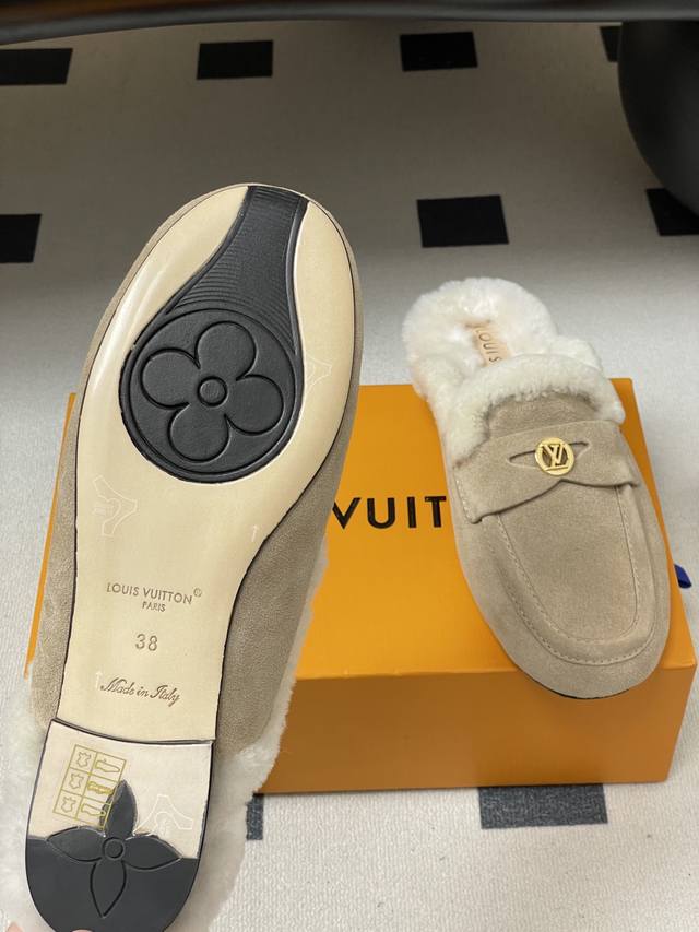 / 25Fw Autumn/Winter New Louis Vuitton Lv Soho Open-Heel Wool Mule Slip-On Flat Sl