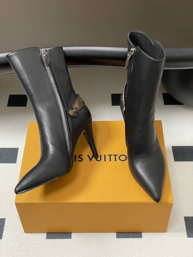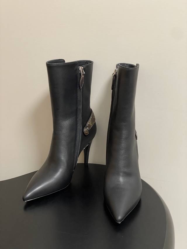 25Ss Early Autumn New Louis Vuitton Lv Legacy Ankle Boots Pointed Toe High Heeled Short Boots with Side Zipper and Monogram Belt