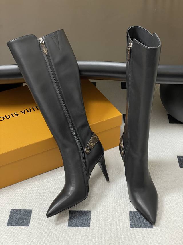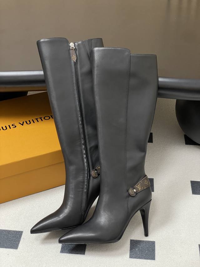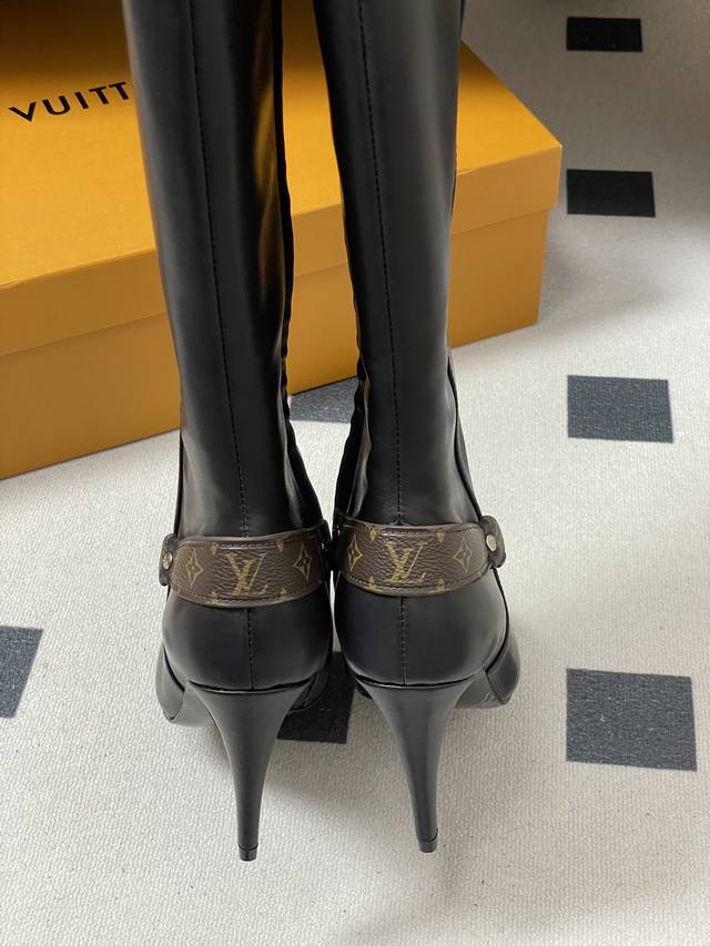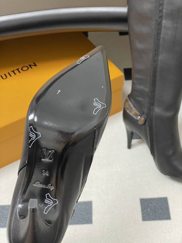 25Ss Early Autumn New Louis Vuitton Lv Legacy Pointed Toe High-Heeled Boots with Side Zipper and Monogram Canvas Strap. This Legacy ankle boot is crafted from smooth calfskin leather, paired with a Monogram canvas strap reminiscent of the handles of the brand's traditional trunks, paying homage to Louis Vuitton's travel heritage. Engraved metal studs accentuate the pointed toe and high heel silhouette. Upper: Calfskin Monogram Canvas Leather; Lining/Insole: Sheepskin; Sole: Italian Leather Outsole; Heel Height: 9.5cm; Sizes: 35-39, 40, 41, 42 (Made to order, no returns or exchanges).