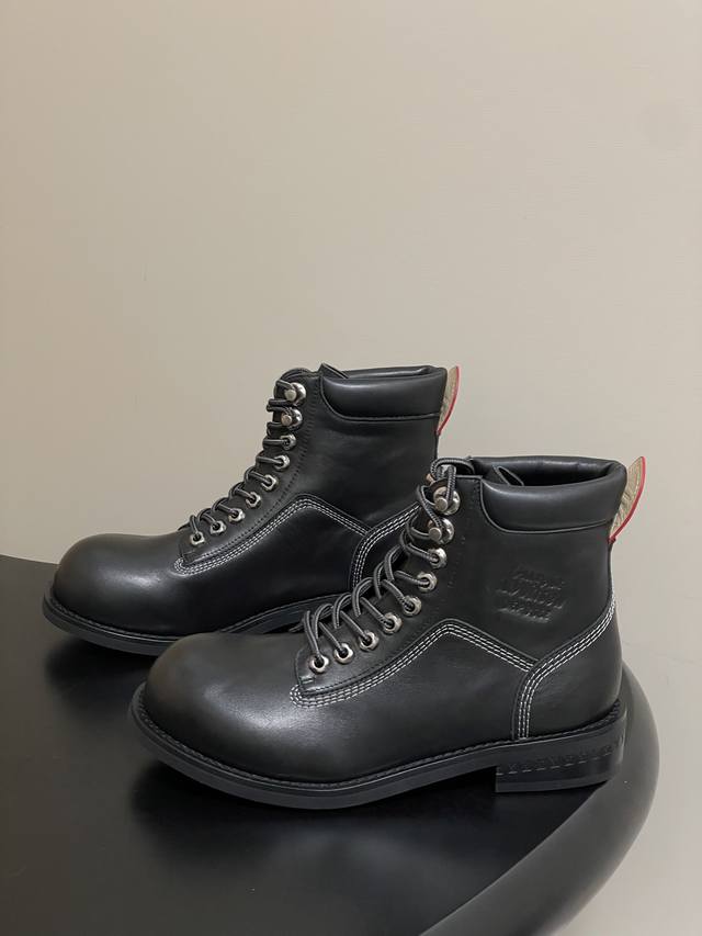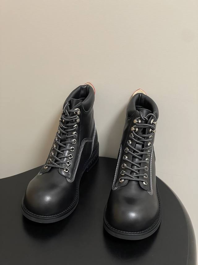 25Ss New Early Fall Louis Vuiteeon LV Bubble Lace-Up Shoes, Men's Thick-Sole Leather Martin Boots. Made from smooth cowhide leather, these LV Bubble lace-ups cleverly embody the Japanese workwear aesthetic evoked by Pharrell Williams and Nigo at the Fall/Winter 2025 Men's Fashion Show. The intricately symmetrical upper features contrasting stitching and Monogram floral eyelets, while the embossed Louis Vuitton leather back strap nods to the brand's leather goods collection. Upper: Cowhide leather. Lining: Cowhide leather. Sole: Original molded TPU rubber outsole. Heel height: 4cm. Sizes: Men's 39-44, 45, 46, made to order, non-refundable.