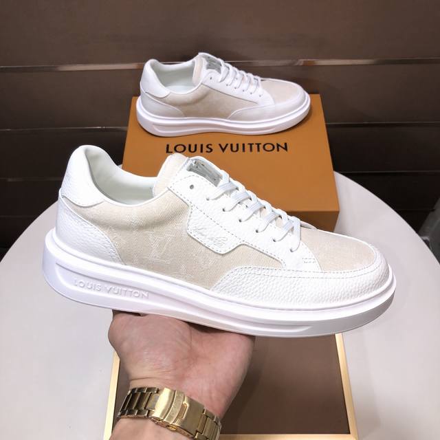 Factory direct, original quality development, DDD Welcome to compare. The LV sneaker series brings the relaxed silhouette of the ready-to-wear collection to the Spring/Summer menswear runway with a striking debut. The cowhide leather upper is combined with rugged fabric laces, accented with colorful beads highlighting classic brand elements. The LV lettering is on the tongue, and the Monogram floral pattern adorns the outsole. Made from top-grain cowhide, the mixed materials feature a chunky lace-up design, Monogram print mesh lining, and cotton insole, ensuring ultimate comfort. A timeless classic, superior quality, a worthwhile purchase! DDD Sizes: Men's 38-45. Size 45 is custom-made and non-refundable. DDD