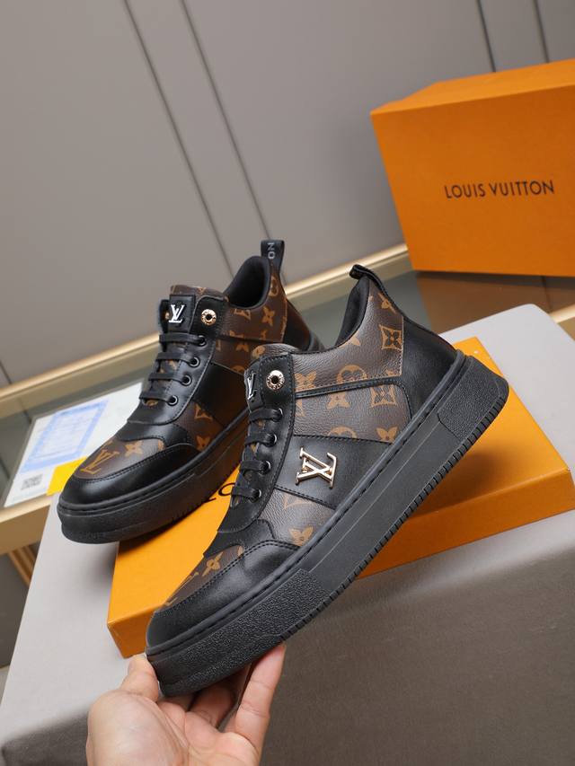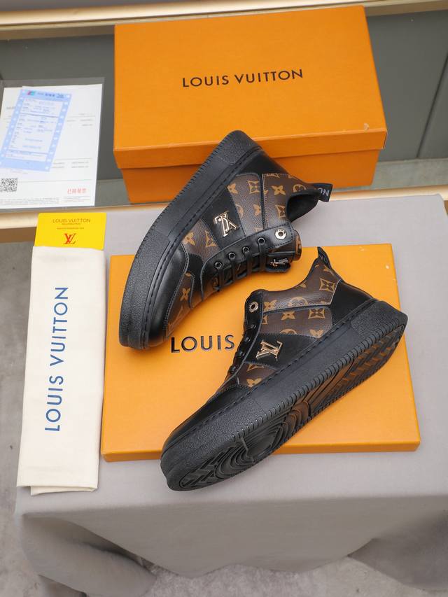 Factory direct price adjustment. High-top men's LV high-top classic best-selling style for autumn and winter. Perfect last, beautiful design style. This winter will no longer be cold. Cowhide leather + LV special material + non-slip and wear-resistant rubber outsole. A must-have for trendy men. Sizes: 38-44 45. Custom-made. Real product photos. The real product looks even better. Two colors available.