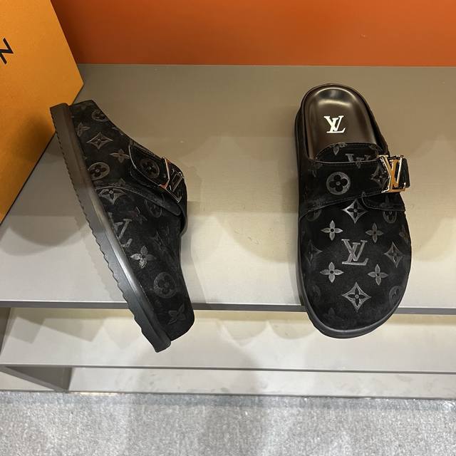 Factory direct price for men's shoes and athletic wear, original quality, sizes 38-45. LV Easy 2025 new men's casual sandals/slippers, made of suede cowhide leather, featuring a Monogram pattern for a trendy look. The LV logo highlights the adjustable strap, while a resilient insole and microsole provide a lightweight and comfortable experience. Features include suede cowhide leather with an embossed Monogram pattern, brand element metal hardware, adjustable strap, resilient insole, and microsole. Comfortable and easy to wear. Size: 38-45.