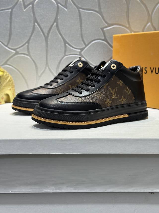 Factory direct price for men's sports shoes, Louis Vuitton L luxury new men's high-top sports boots. The upper is made of cowhide with monogram pattern, stylish and fashionable. High-end and comfortable sheepskin lining, original rubber outsole, lightweight and wear-resistant! Purely handmade, details determine quality! Ddd Size: 38-44 45 Customized DDD