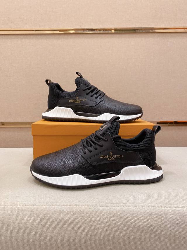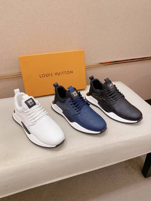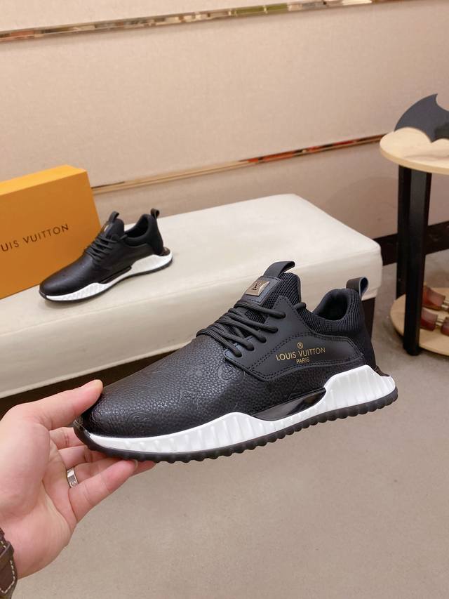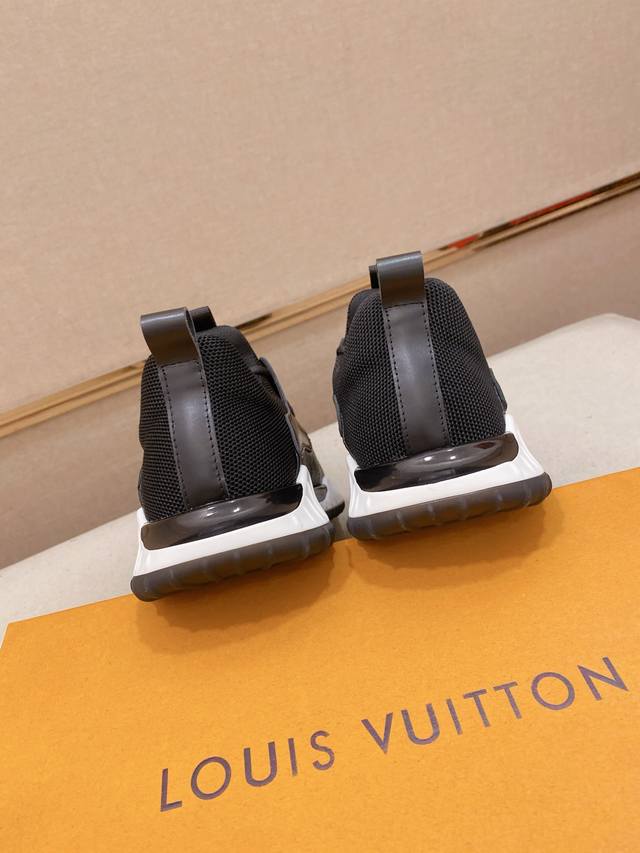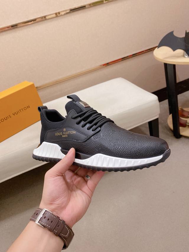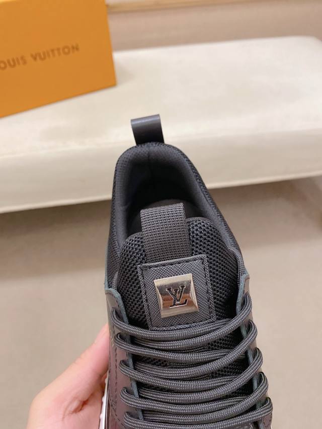 Factory direct price for men's sports shoes, original Louis Vuitton (LV) sneakers. Latest trendy casual shoes, best-selling items in physical stores. New spring/summer comfortable imported custom original cowhide leather, unique jacquard fabric design. Features a sheepskin lining, original LV sole, high-end packaging, high-quality details determine quality, can be freely inspected and sold in boutiques. Welcome to compare sizes 38-44.