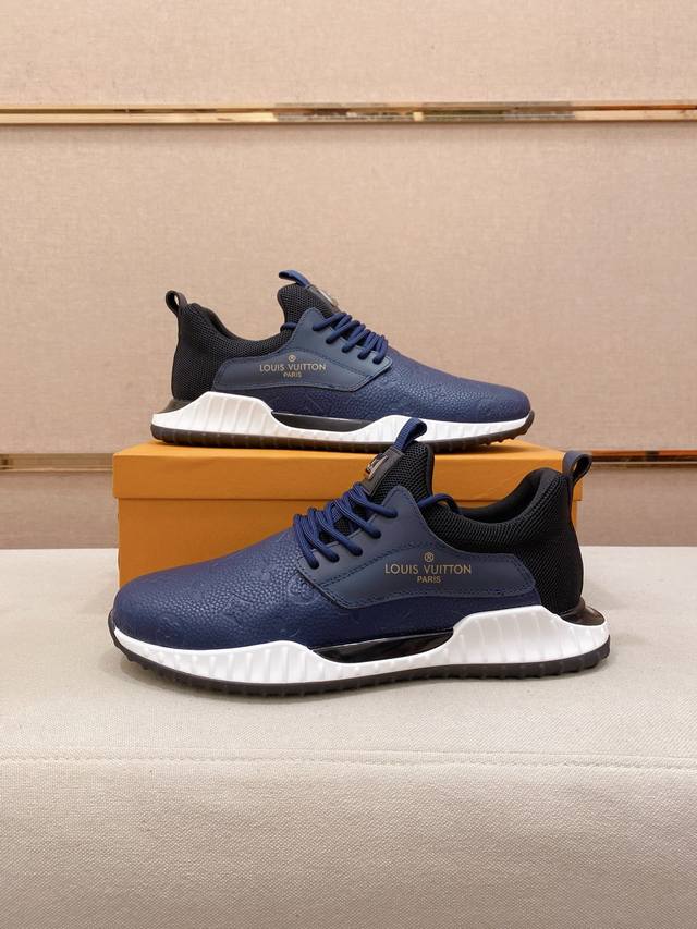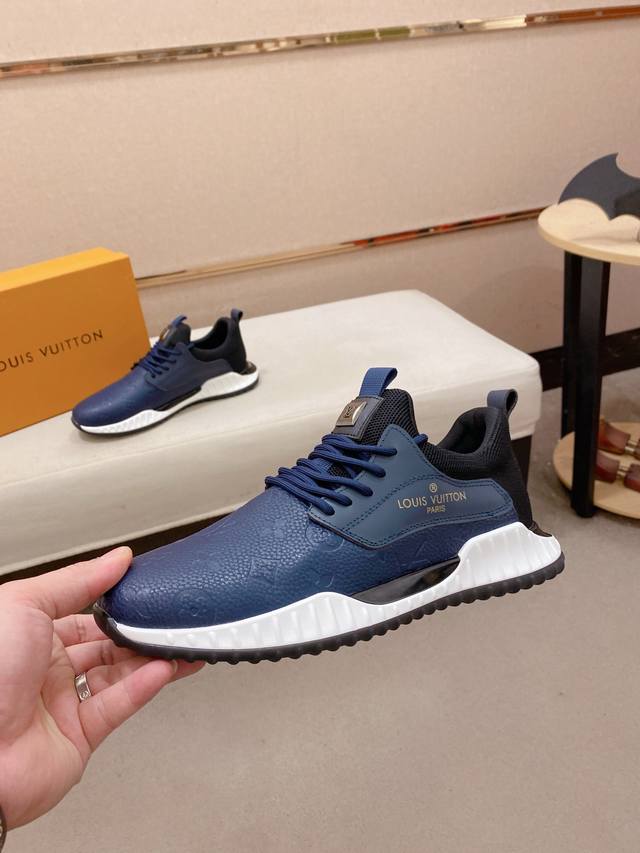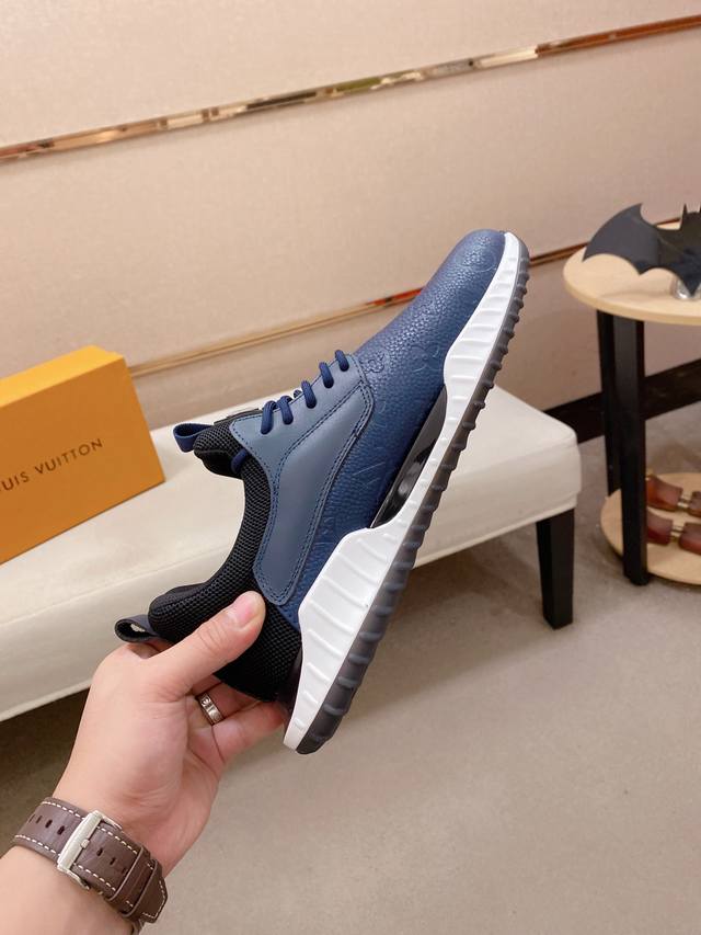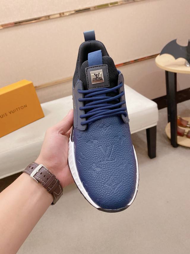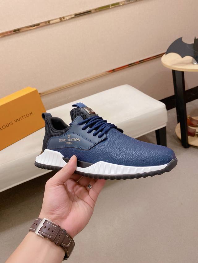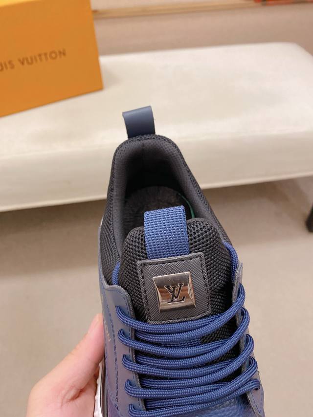 Factory direct price for men's sports shoes, original Louis Vuitton (LV) sneakers. Latest trendy casual shoes, best-selling items in physical stores. New spring/summer comfortable imported custom-made original cowhide leather, unique jacquard fabric design. Features a sheepskin lining, original LV sole, high-end packaging, high-quality details determine quality, can be freely inspected and sold in boutiques. Welcome to compare sizes 38-44.