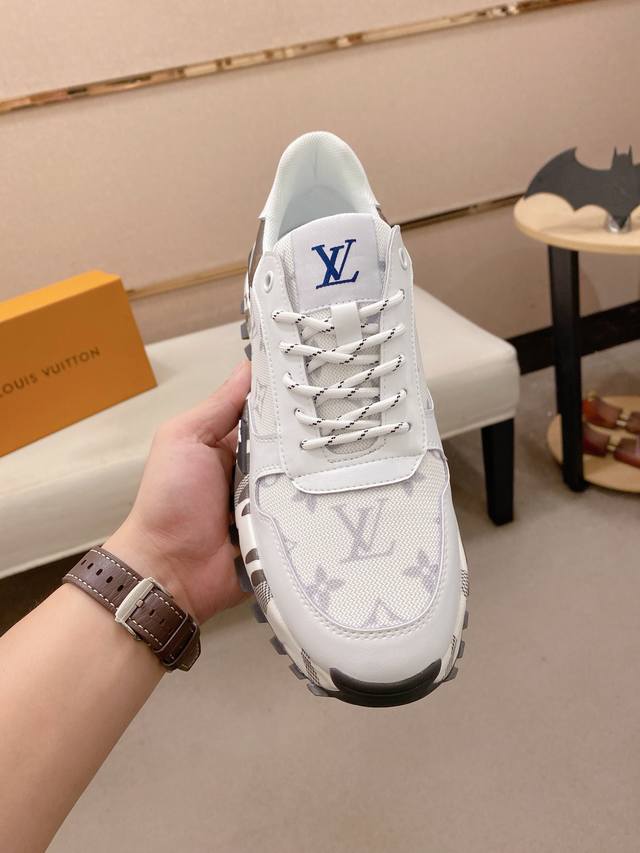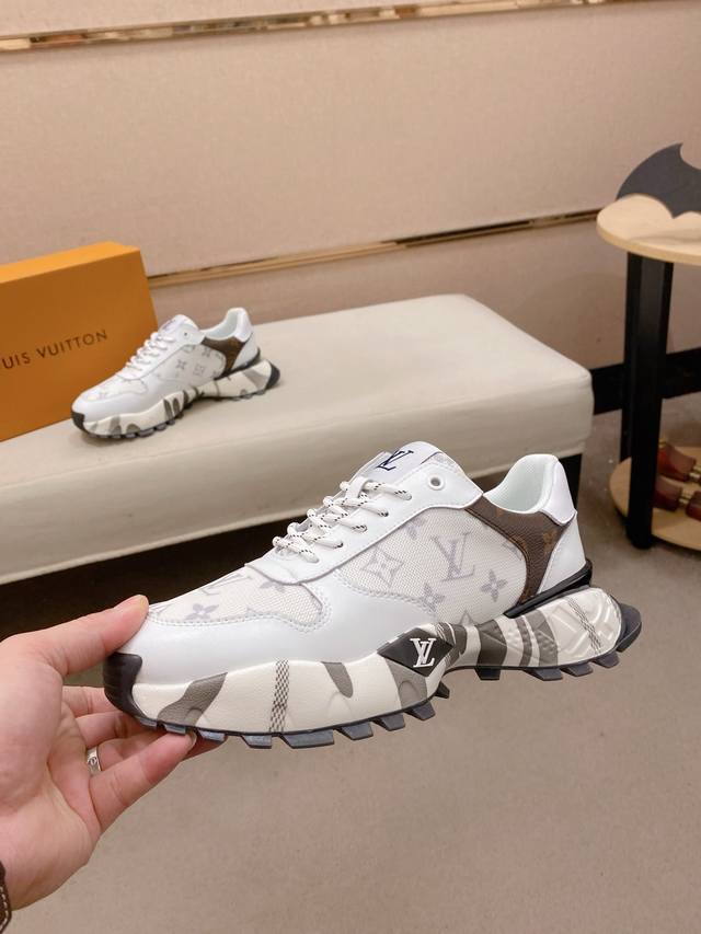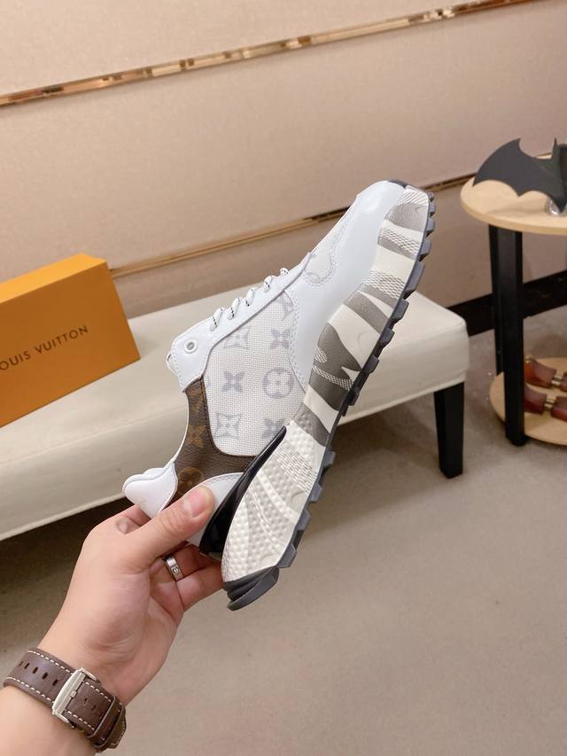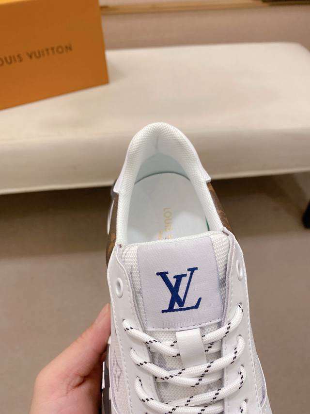 Factory direct price for men's sports shoes, original Louis Vuitton (LV) sneakers. Latest trendy casual shoes, best-selling items in physical stores. New spring/summer comfortable imported custom-made original cowhide leather, unique jacquard fabric design. Features a sheepskin lining, original LV sole, high-end packaging, high-quality details determine quality, can be freely inspected and sold in boutiques. Welcome to compare sizes 38-44.