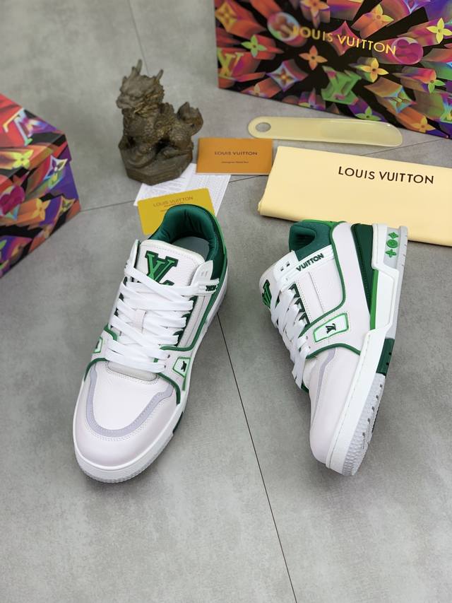 Factory direct price, genuine Louis Vuitton original single new LV classic trendy shoes! Made with imported original cowhide water-dyed cowhide lining. Latest original wear-resistant rubber outsole! High-quality product! 4 colors available, sizes: 38-46.