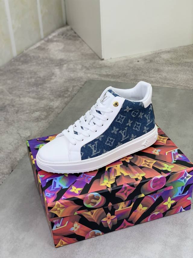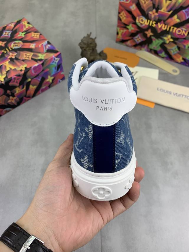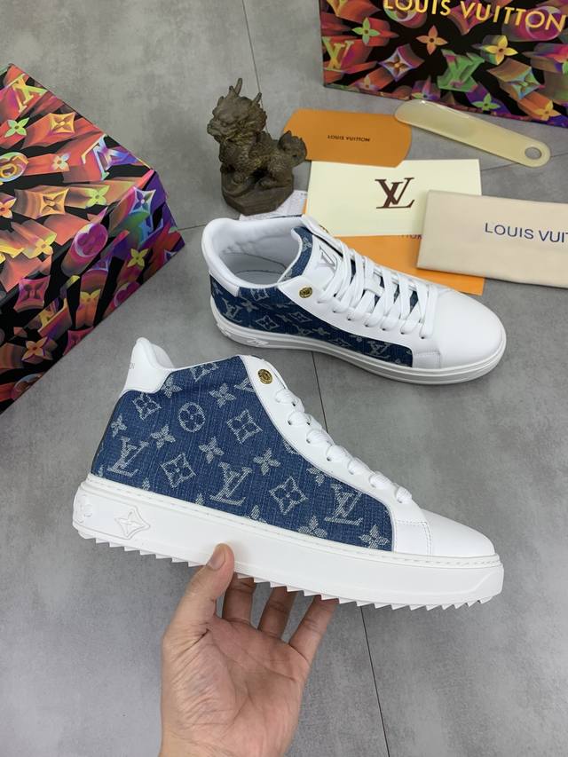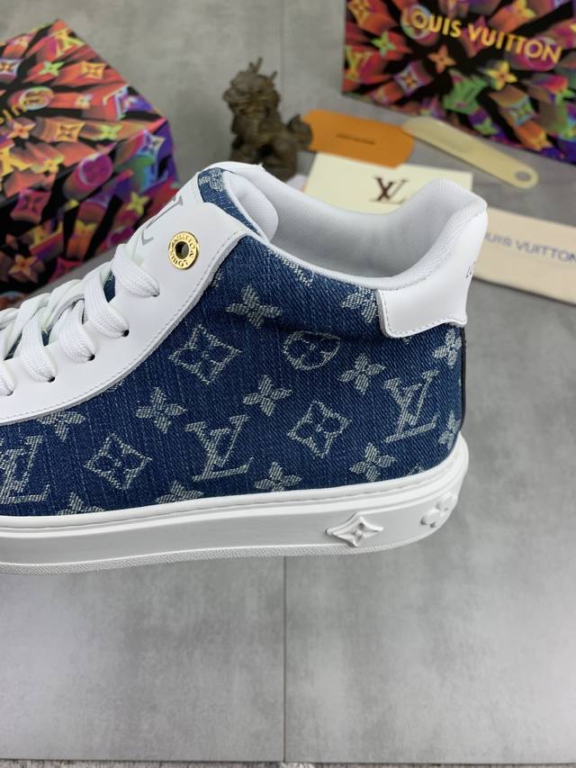 Factory direct price, high-quality Louis Vuitton (LV) official website latest casual fashion high-top men's shoes, popular style, simple and elegant design, exclusive for trendy men. Unique official website latest brand elements original decoration, fashionable and generous, made of original denim, comfortable and breathable mesh lining, cowhide insole, official website specified wear-resistant casual outsole, classic style, real object shooting. Colors: 4 colors available. Sizes: 38-44. Full packaging.