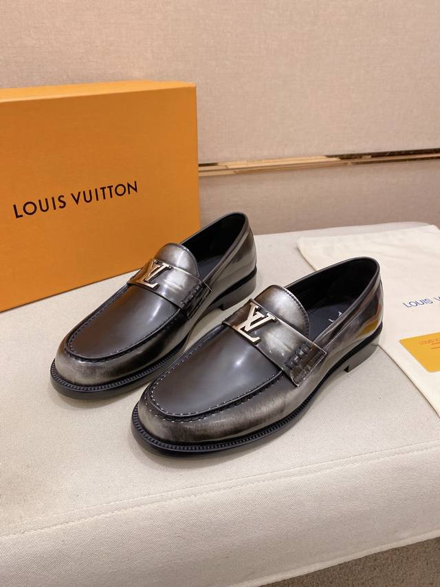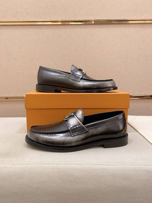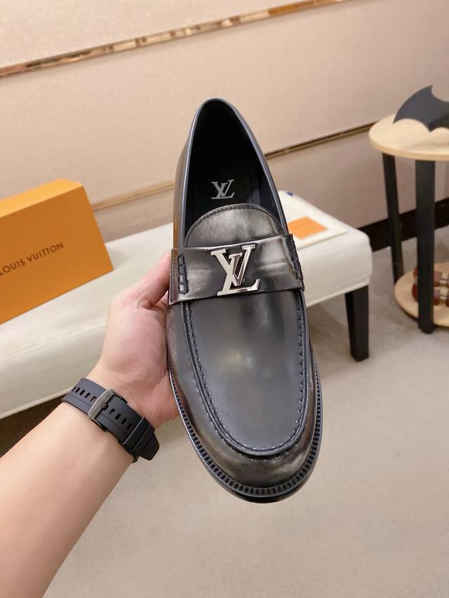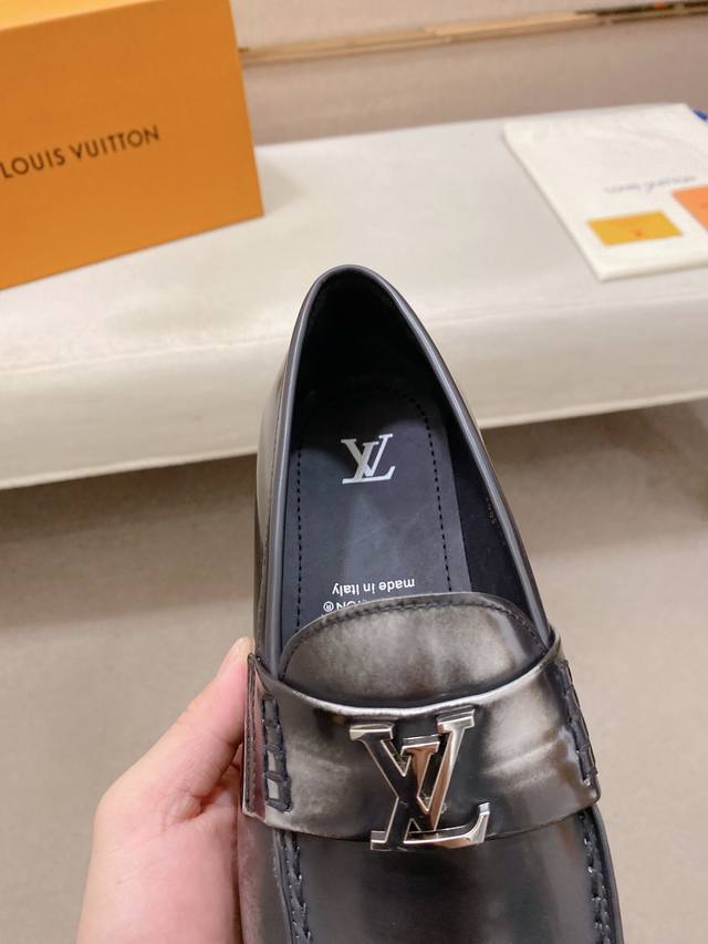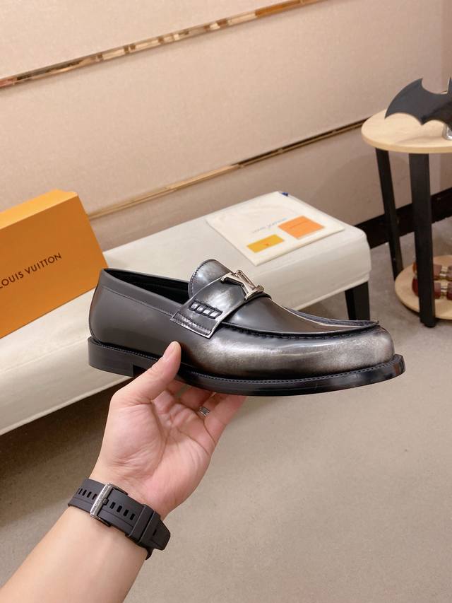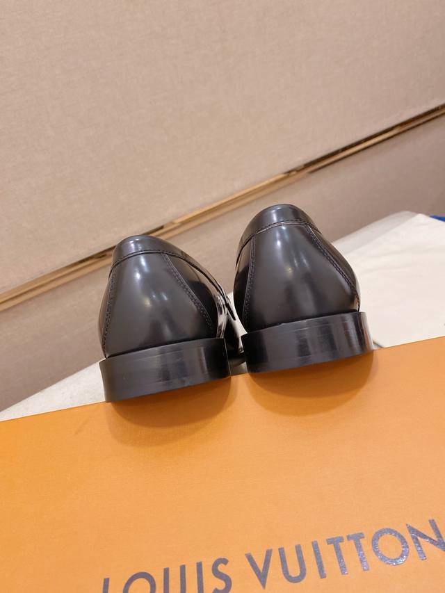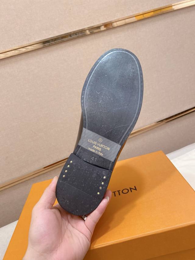 Factory direct price Louis Vuitton LV Men's Classic Oxford Shoes, Men's Business Formal Leather Shoes, Classic Almond Knife Exquisite Toe, Ultimate Artistic Design. The entire shoe is made of imported cowhide leather, meticulously selected for its fine pores and excellent luster. It is soft, durable, and resistant to deformation. The apricot-colored calfskin lining is soft, comfortable, sweat-absorbent, and breathable. The heel features a composite rubber sole, and both the front and back outsole are reinforced with studs for slip resistance and wear resistance. Made with Goodyear welt construction, the shoe has an excellent shape, exuding understated luxury and style, suitable for all kinds of formal occasions! Original box and dust bag packaging! Sizes: 39-44, 38, 45. Custom orders are welcome.