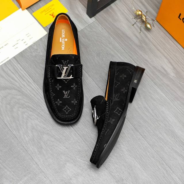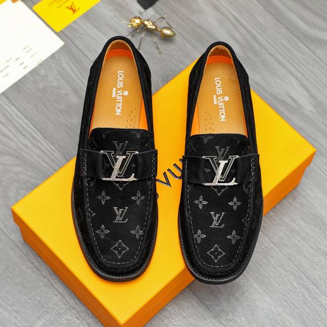 Factory direct price men's clothing, shoes, sportswear, original brand, trademark: Louis Vuitton business formal slip-on leather shoes. True to size: 38-45. Material: Selected lychee-textured cowhide upper, cowhide lining, original TPU outsole.