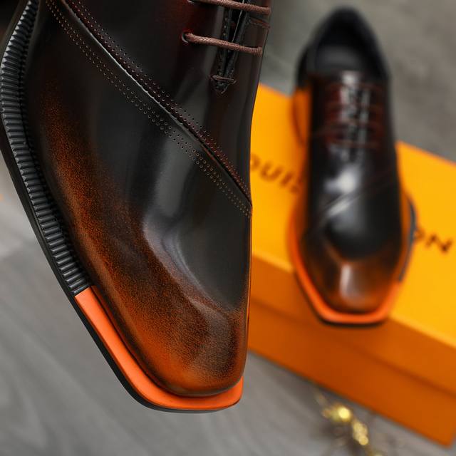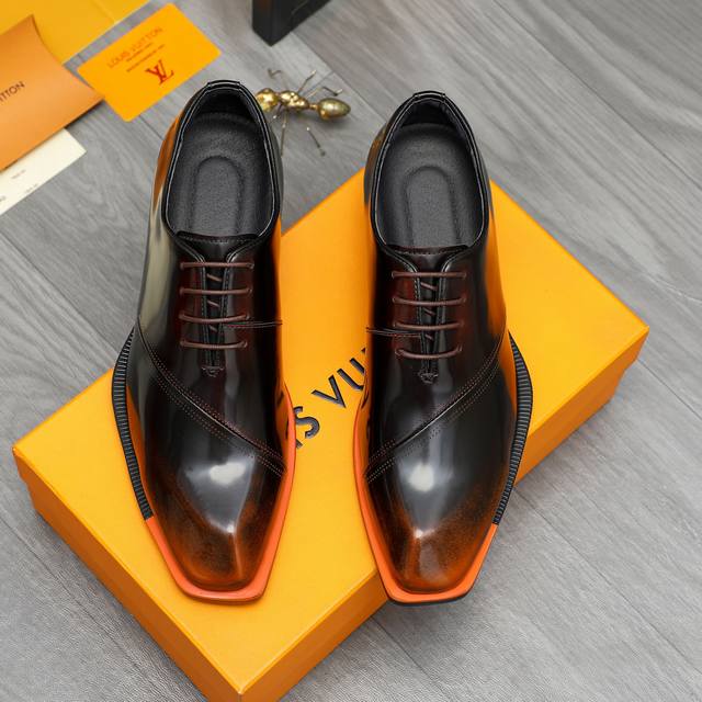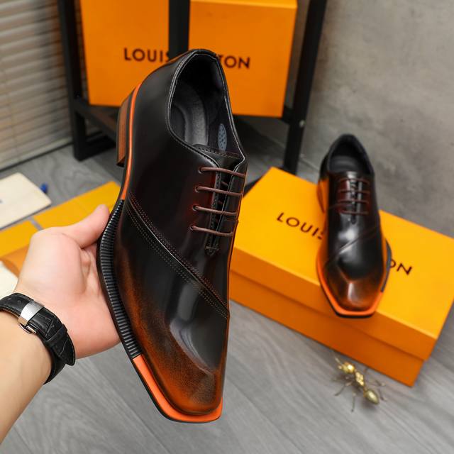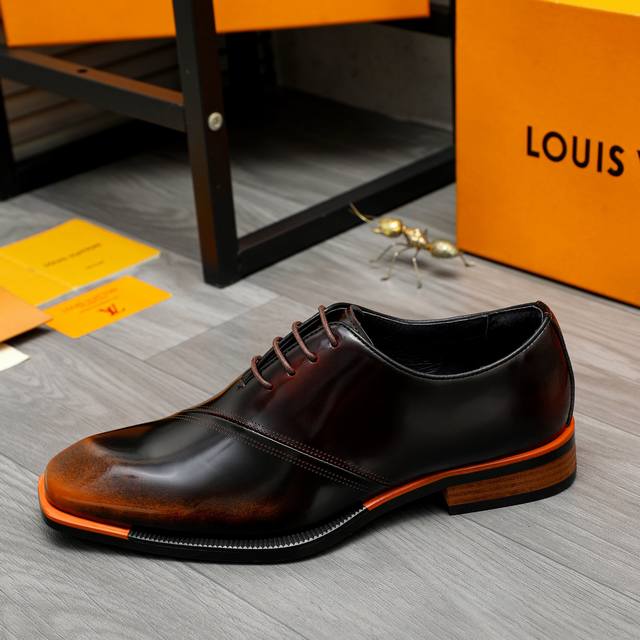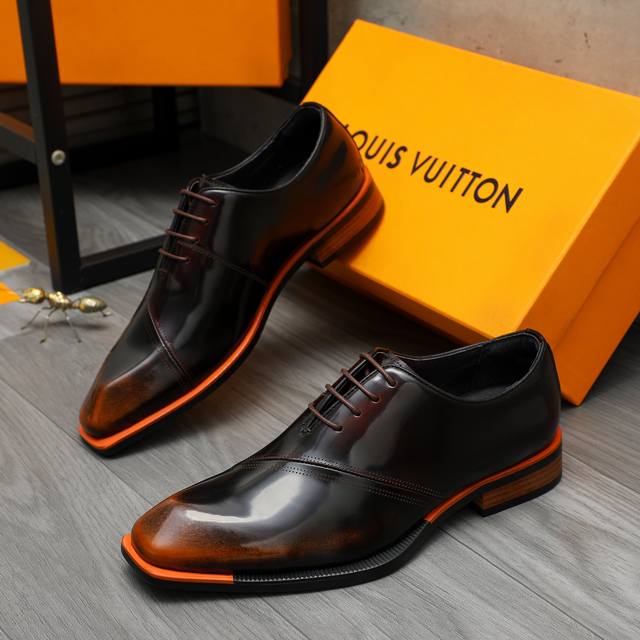 Factory direct price men's clothing, shoes, sportswear, original brand. Trademark: Louis Vuitton business lace-up dress shoes . Sizes: 37-46. Materials: Selected distressed cowhide upper, pigskin lining, rubber outsole.