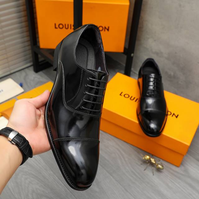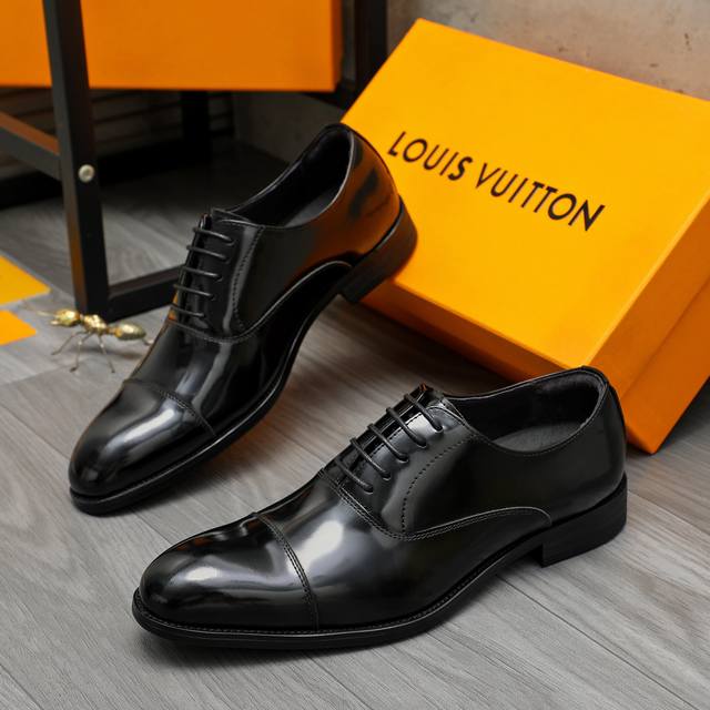 Factory direct price men's clothing, shoes, sportswear, original brand. Trademark: Louis Vuitton business formal lace-up leather shoes. Sizes: 37-46. Materials: Selected high-quality pearlescent cowhide upper, pigskin lining, rubber outsole.