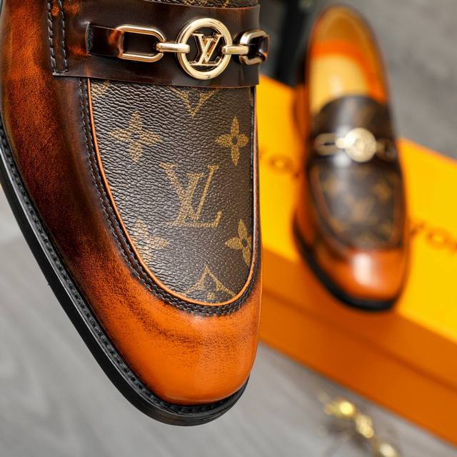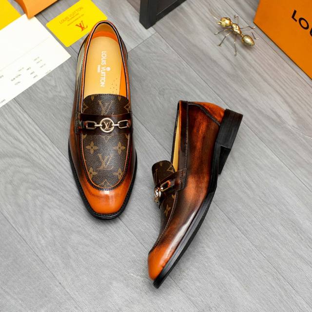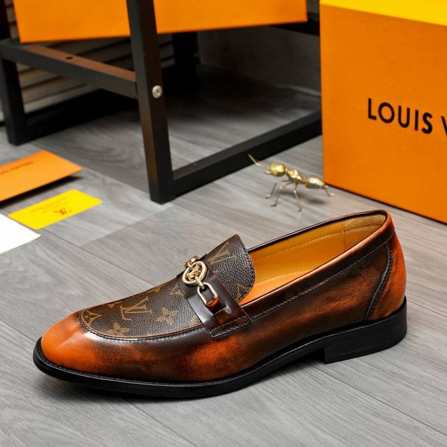 Factory direct price men's shoes and sportswear original product. Trademark: Louis Vuitton business formal slip-on leather shoes. Sizes: 38-45. Material: Selected cowhide upper, cowhide lining, original TPU outsole.