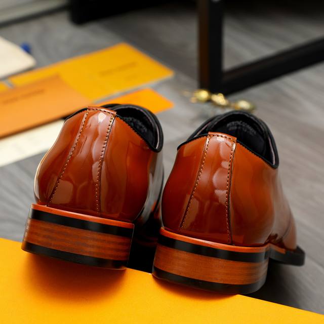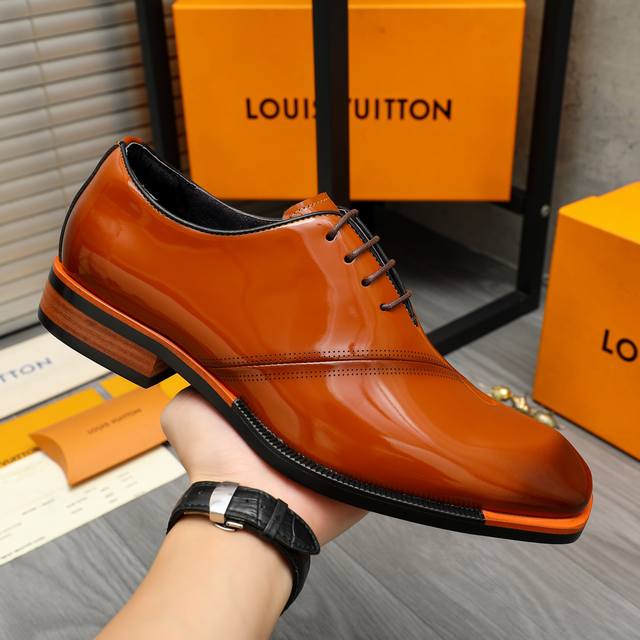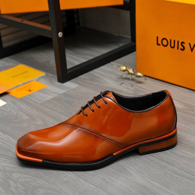 Factory direct price men's shoes and sportswear original product. Trademark: Louis Vuitton business formal lace-up leather shoes. Sizes: 37-46. Materials: Selected pearlescent bleached cowhide upper, pigskin lining, rubber outsole.
