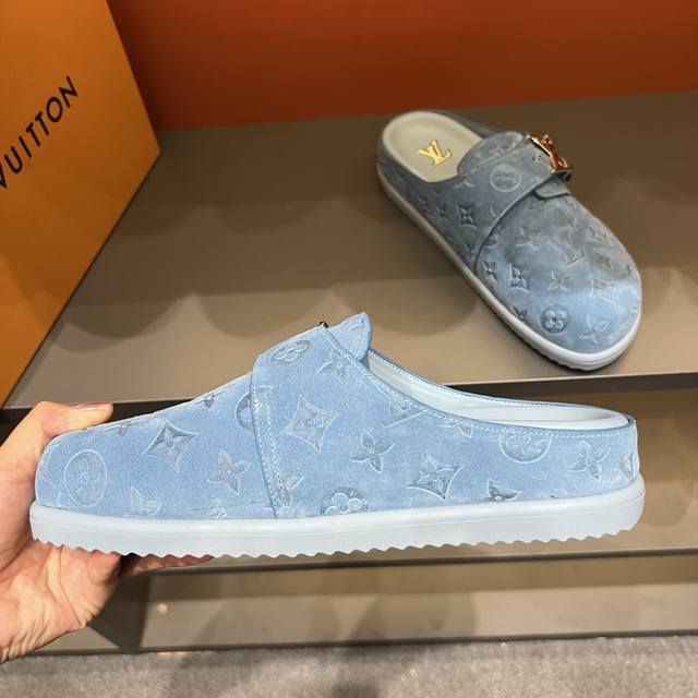 Factory direct price men's shoes and sportswear original single item 38-45 LV Easy 2025 new men's casual sandals, made of suede cowhide leather, featuring a Monogram pattern to showcase a trendy style. The LV logo highlights the adjustable strap, while the resilient insole and microsole provide a lightweight and comfortable experience. Features include suede cowhide leather with an embossed Monogram pattern, brand element metal hardware, adjustable strap, resilient insole, and microsole. Comfortable and easy to wear. Size: 38-45.