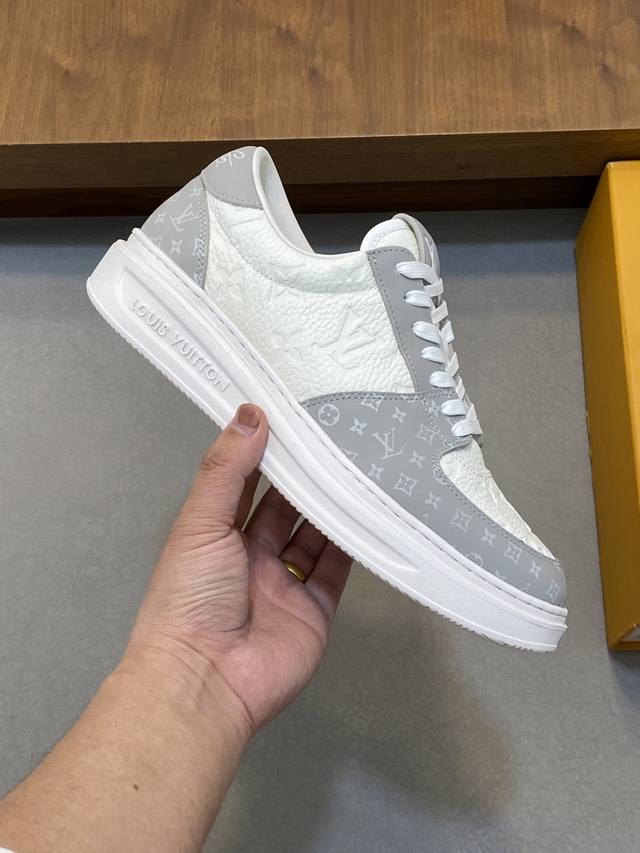 Factory direct price men's shoes, sports shoes, original single size, classic men's casual sports shoes. This Beverly Hills sneaker features a soft cowhide leather upper with the classic Monogram print, creating an elegant look. The rubber outsole is thick yet lightweight, adorned with the Louis Vuitton logo embossed. A padded insole and technical lining further enhance the comfort experience. The Italian imported calfskin lining is high-end and comfortable, and the original outsole is lightweight and durable! Purely handmade, details determine quality! Size: 38-45