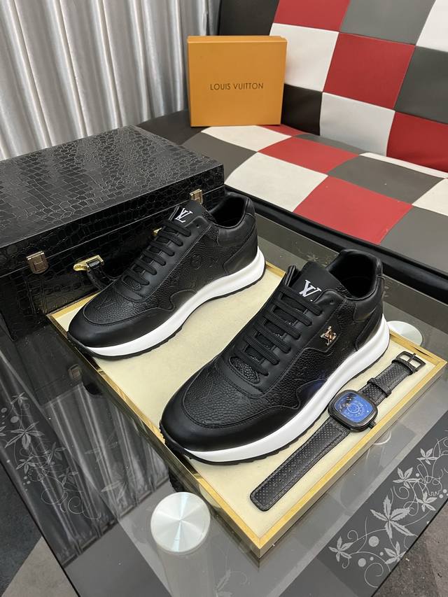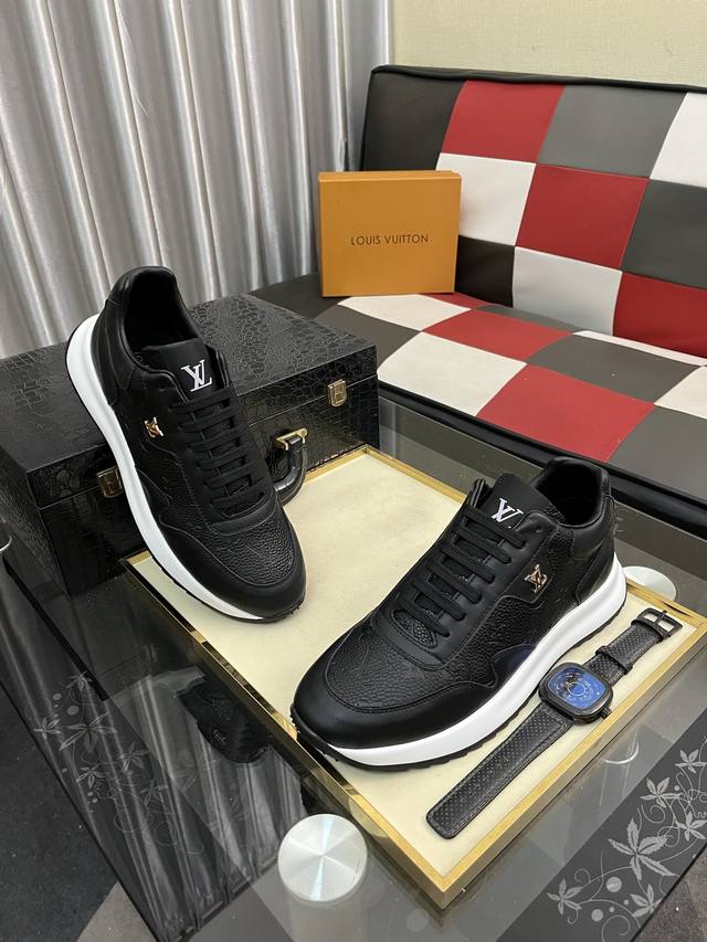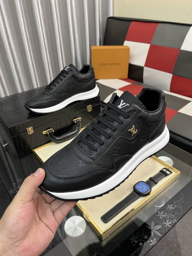 Factory direct price men's sports shoes, Louis Vuitton Lv original quality. Unique modern style sports shoes. Casual shoes, a must-have for trendy men. Italian imported original brand, imported original leather, cow lining to prevent fading and rubbing. Sole: original factory supply, French lazy style design, fits snugly, original quality, super comfortable original sole. Sizes: 38-443 colors available.