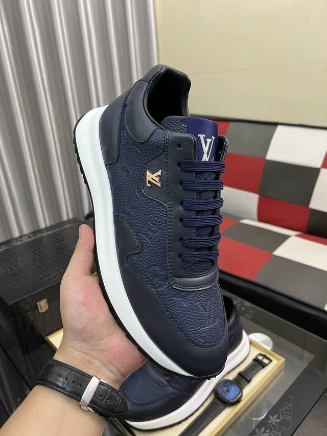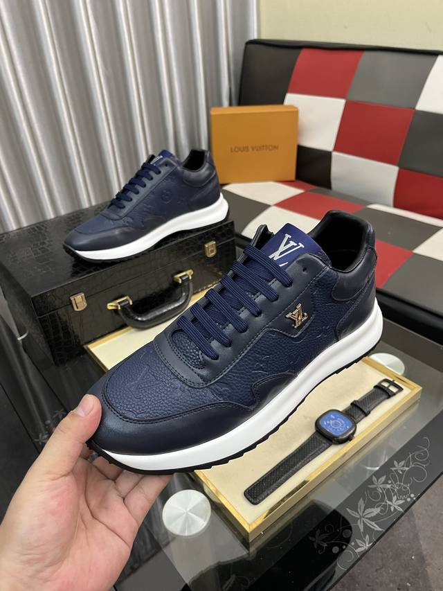 Factory direct price men's sports shoes, Louis Vuitton Lv original quality. Unique modern style sports shoes. Casual shoes, a must-have for trendy men. Italian imported original brand, imported original leather, cow lining to prevent fading and rubbing. Sole: original factory supply, French lazy style design, fits snugly, original quality, super comfortable original sole. Sizes: 38-443 colors available.