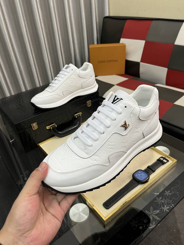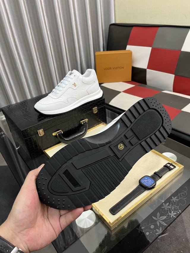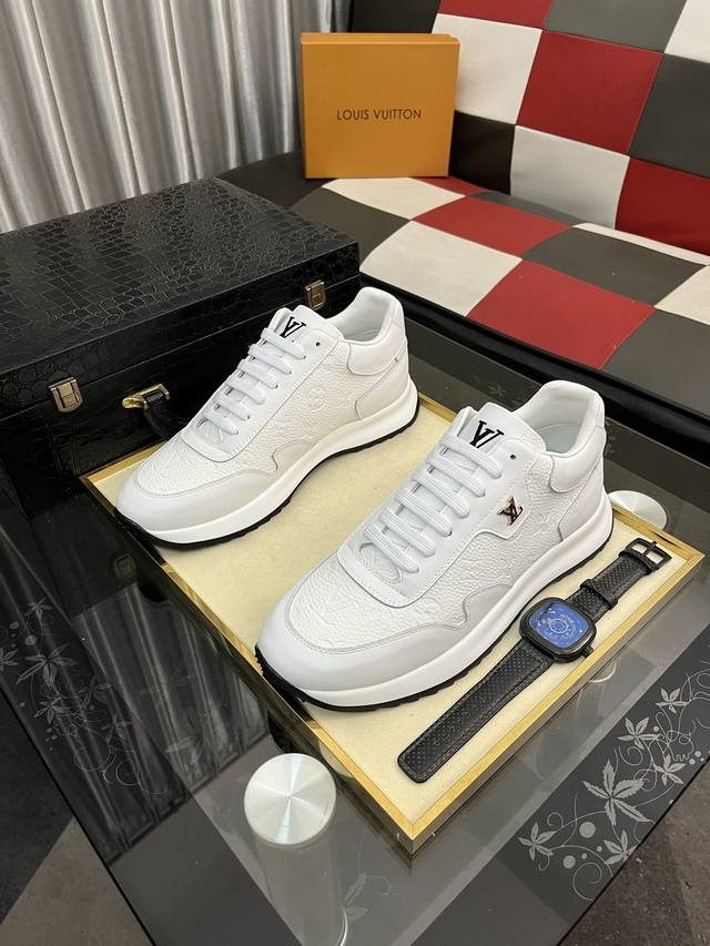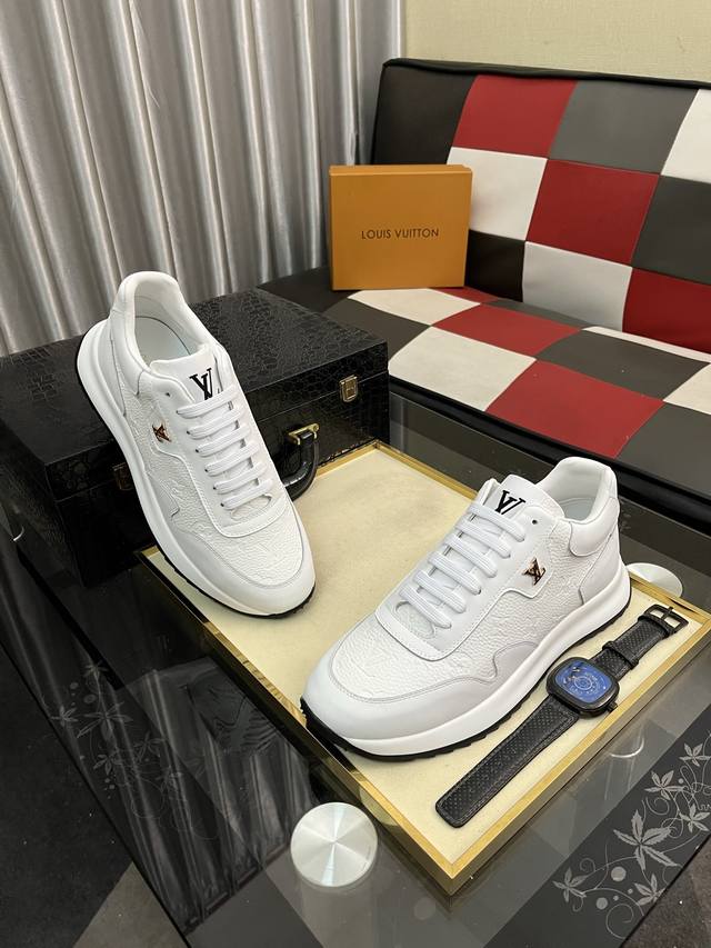 Factory direct price men's sports shoes, Louis Vuitton Lv original quality. Unique modern style sports shoes. Casual shoes, a must-have for trendy men. Italian imported original brand, imported original leather, cow lining to prevent fading and rubbing. Sole: original factory supply, French lazy style design, fits snugly, original quality, super comfortable original sole. Sizes: 38-443 colors available.