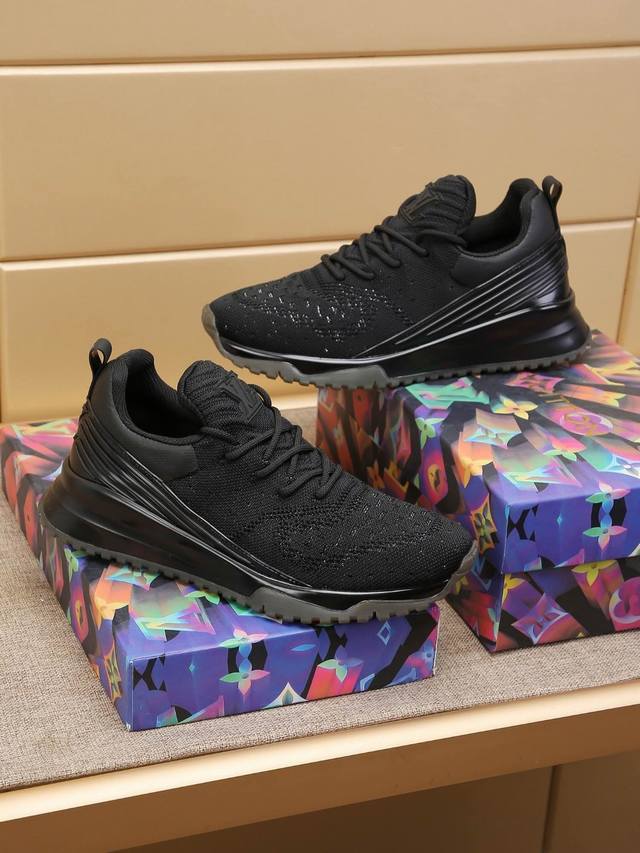 Factory direct price men's sports shoes, original Louis Vuitton style, trendy and versatile men's shoes, private mold opening. The upper uses a breathable flyknit one-piece material: 1 replica... fashionable and crisp, stylish and individual, more trendy and eye-catching, pursuing a higher level. It will subvert old ideas and accompany you through the must-have high-end comfort of fashionistas, with high-end quality workmanship. Sizes: 38-46, multiple colors available.