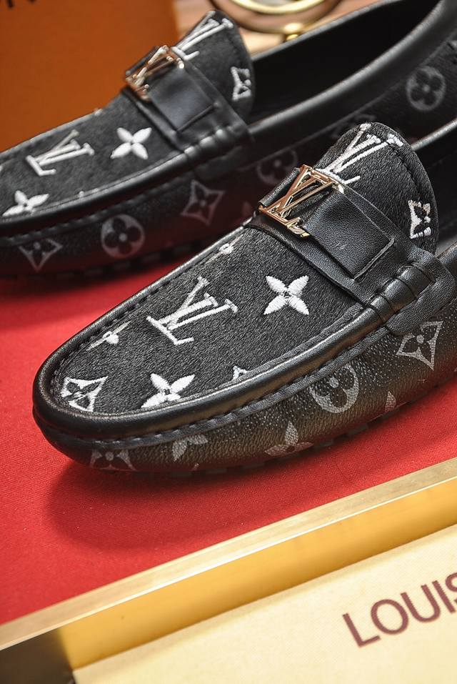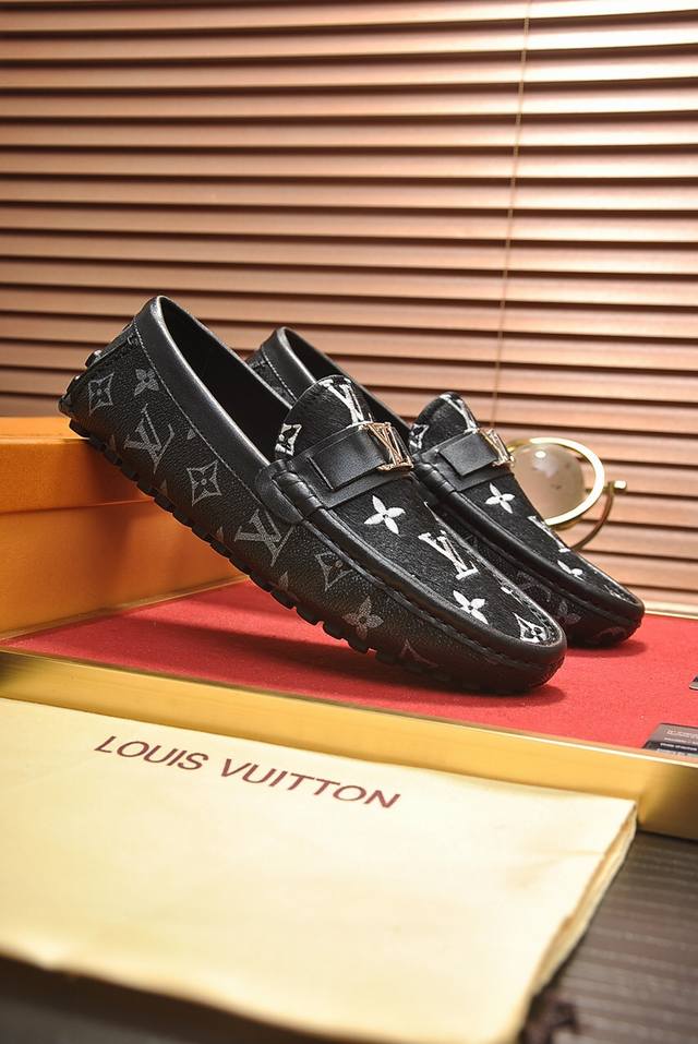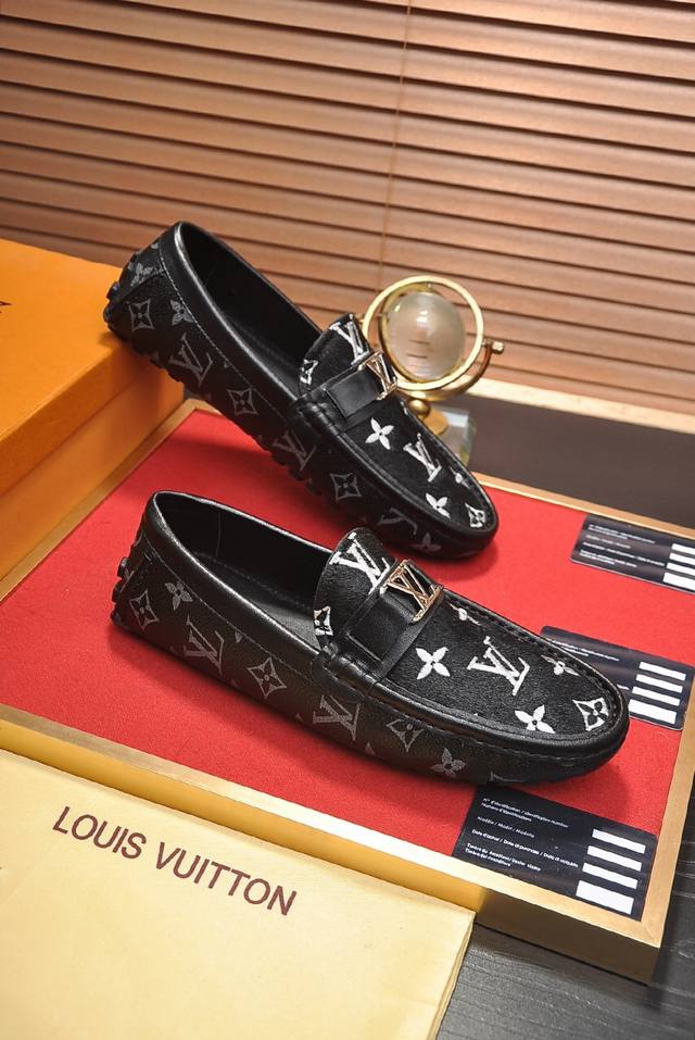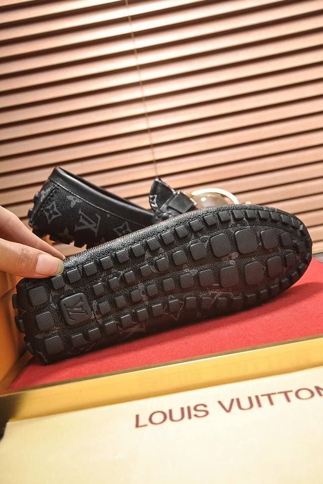 Factory direct price men's sports shoes, original LV moccasins, new arrivals with water-dyed cowhide lining, available on the official website. These new moccasins are made with a unique color, and the upper is made of imported horsehide leather. The shoe body is edged with stitching, and features an imported original cowhide lining. The elegant shoe shape is super versatile and suitable for matching with any outfit. Sizes 38-44. DDD