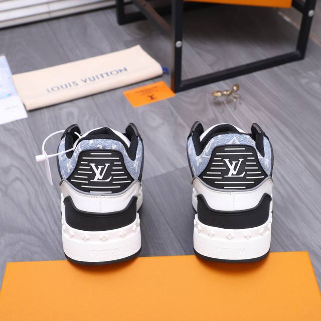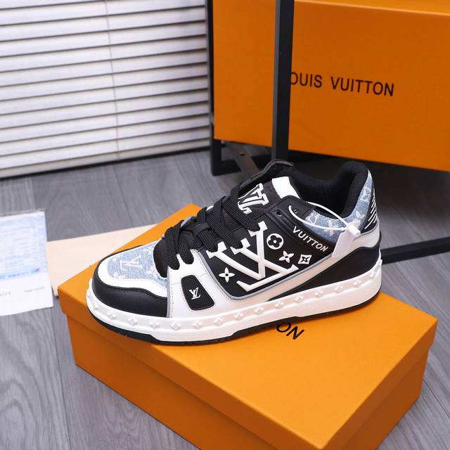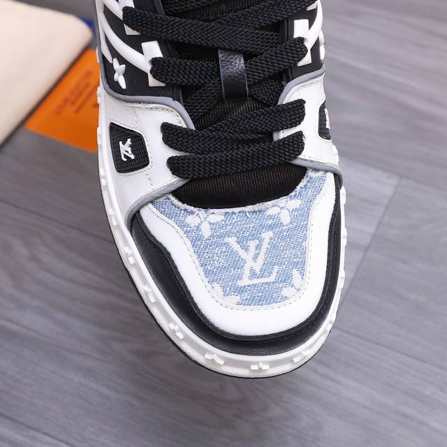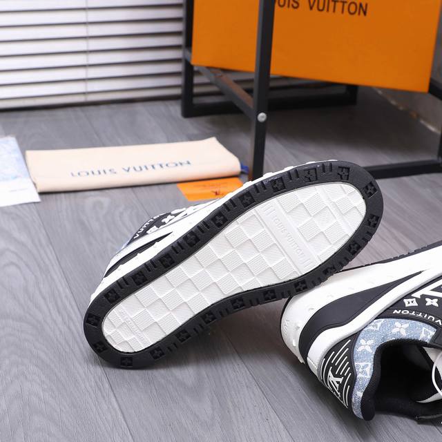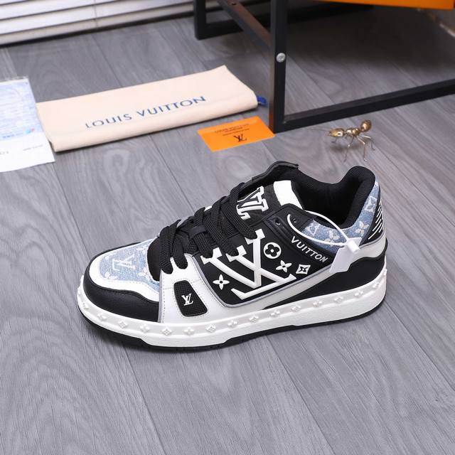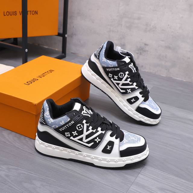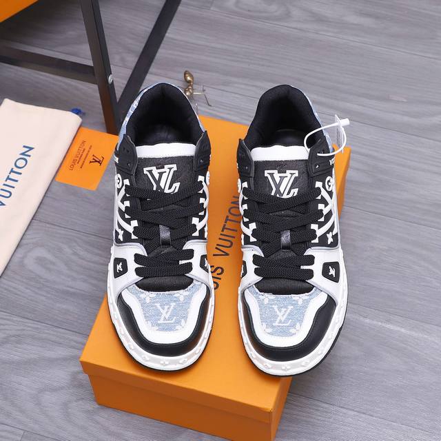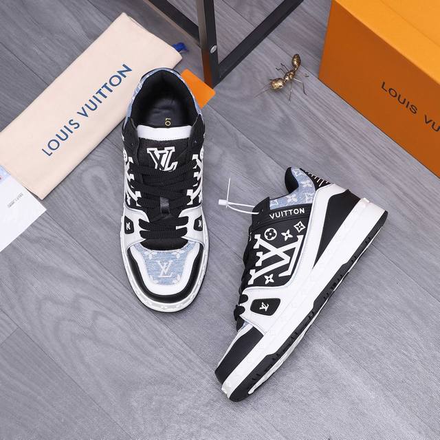 Factory direct price men's sports shoes original product. Trademark: Louis Vuitton casual lace-up men's shoes. Sizes: 38-44. Material: Selected classic denim woven patchwork cowhide upper, breathable mesh lining, original rubber outsole.