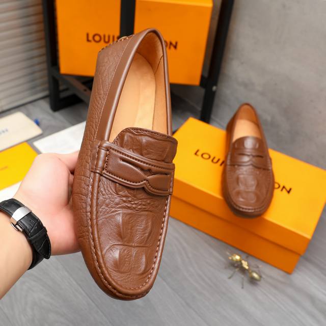 Factory direct price men's sports shoes original product. Trademark: Louis Vuitton casual slip-on men's shoes. Sizes: 38-44. Material: Selected embossed cowhide upper, pigskin lining, rubber outsole.