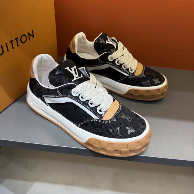 Factory direct price men's sports shoes, original quality, sizes 38-45, top-tier version, Louis Vuitton classic runway new style, DDD (outer rubber) craftsmanship, 1:1 original development! Extremely comfortable to wear, luxurious materials, exquisite workmanship, midsole printed with "Made in Europe" (DDD), upper made of imported Italian calfskin, side adorned with the brand logo and signature, latest latex insole, mesh lining, super comfortable feel. Original factory exclusive, original two-tone TPU outsole. Outsole construction: Goodyear welt stitching and overlock edging; Exclusive custom-made top-grain cowhide leather; Accessories: Exclusive private mold Vuitton logo; Lining: Custom-made silky mesh lining - top-grain silk cowhide lining; Outsole: TPU composite outsole, wear-resistant, slip-resistant, and anti-yellowing; Insole: New latex insole - mesh sweat-absorbing; Craftsmanship: Fully computerized stitching, toe cap, heel counter with heat and cold setting, full lasting, mid-low logo pattern.