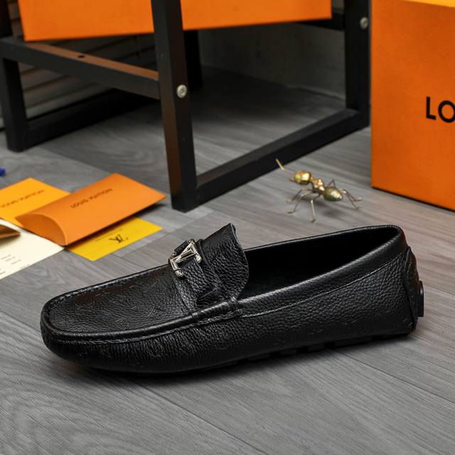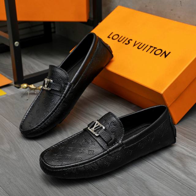 Factory direct price product trademark: Louis Vuitton casual slip-on men's shoes. True to size: 38-44. Material: Selected lychee-patterned cowhide embossed upper, sheepskin lining, rubber outsole.