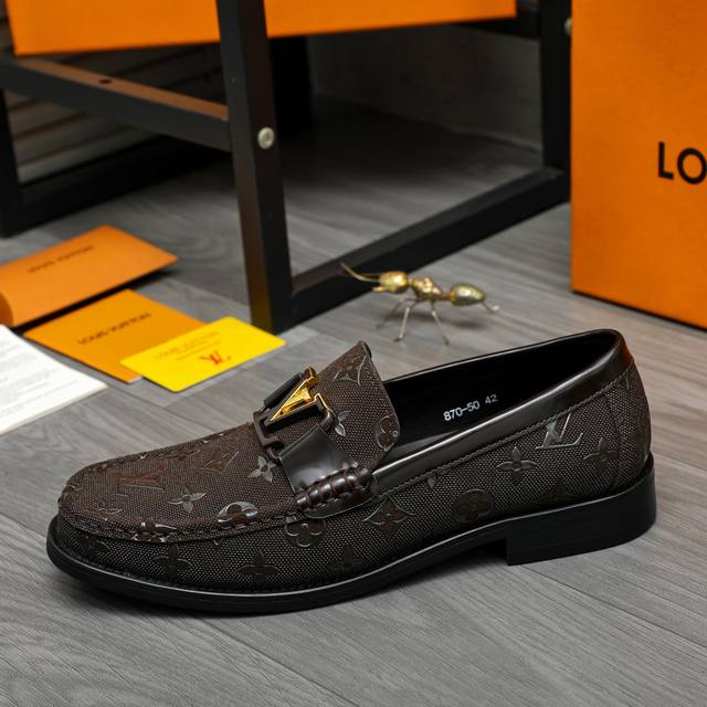 Factory direct price product trademark: LV Louis Vuitton business slip-on leather shoes. True to size: 39-45. Size 45 is custom-made and non-refundable. Product materials: Selected embossed cowhide upper, cowhide lining, original rubber outsole.