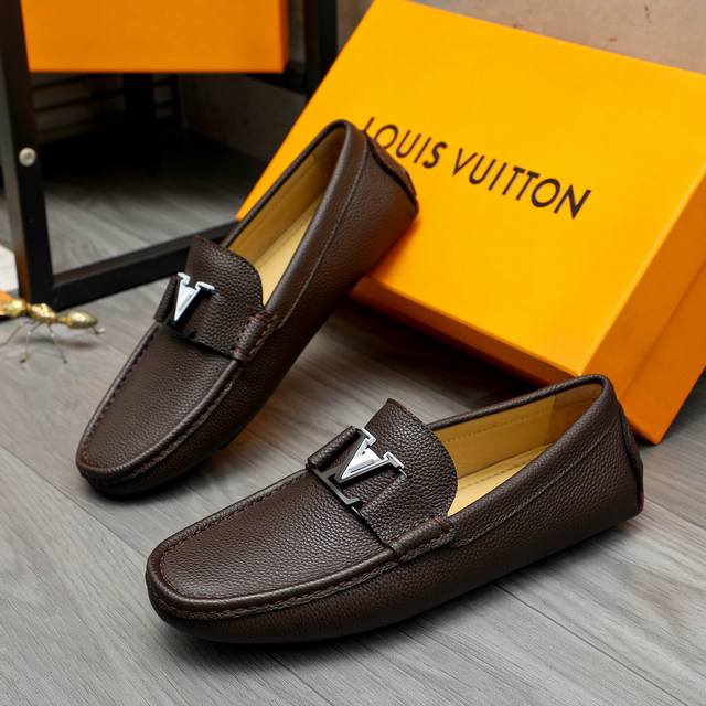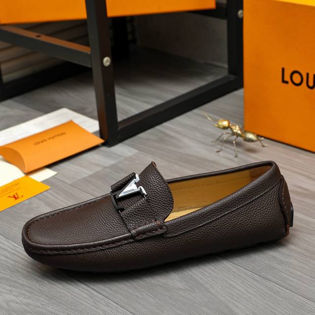 Factory direct price product trademark: LV Louis Vuitton casual slip-on shoes. True to size: 38-46, 45-46. Custom orders are non-refundable. Materials: Selected lychee-patterned cowhide upper, sheepskin lining, original rubber outsole.