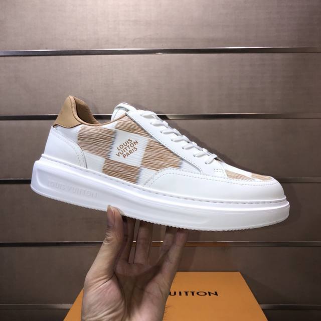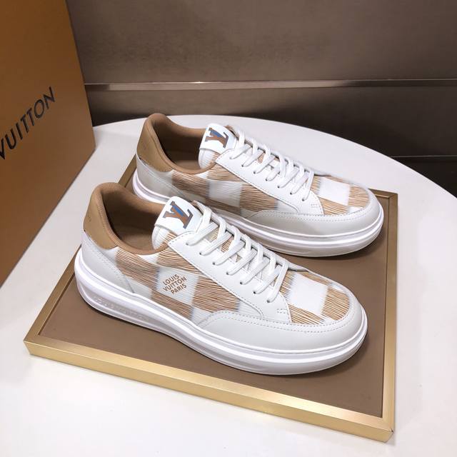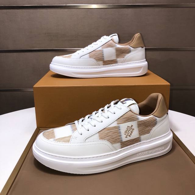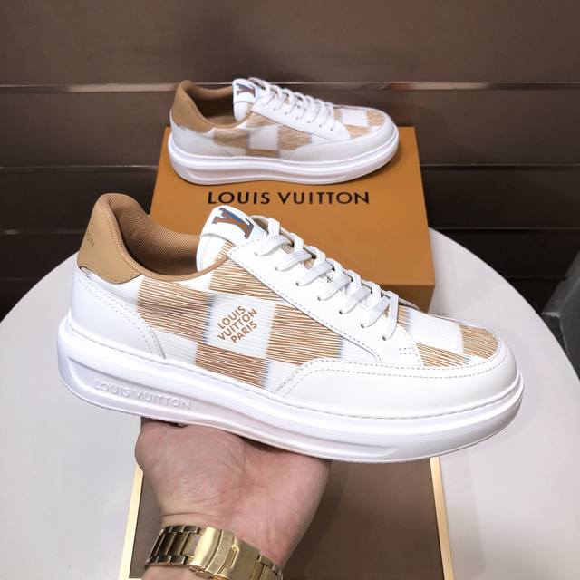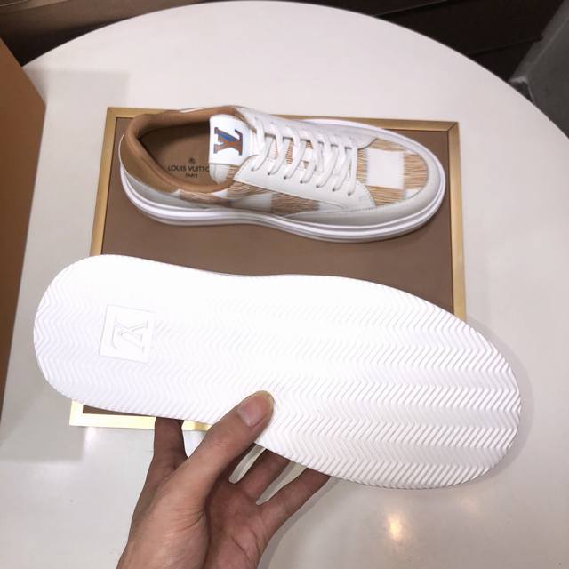 Factory direct wholesale, original development, quality shipped directly. Welcome to compare. The LV sneaker series brings the relaxed silhouette of the ready-to-wear collection to the Spring/Summer menswear runway with a striking debut. The cowhide leather upper is combined with rugged fabric laces, accented with colorful beads highlighting classic brand elements. The LV lettering is on the tongue, and the Monogram floral pattern adorns the outsole. Made from top-grain cowhide, the mixed materials feature a chunky lace-up design, Monogram print mesh lining, and cotton insole, ensuring ultimate comfort. A timeless classic, superior quality, a worthwhile purchase! Sizes: Men's 38-45. Size 45 is custom-made and non-refundable.